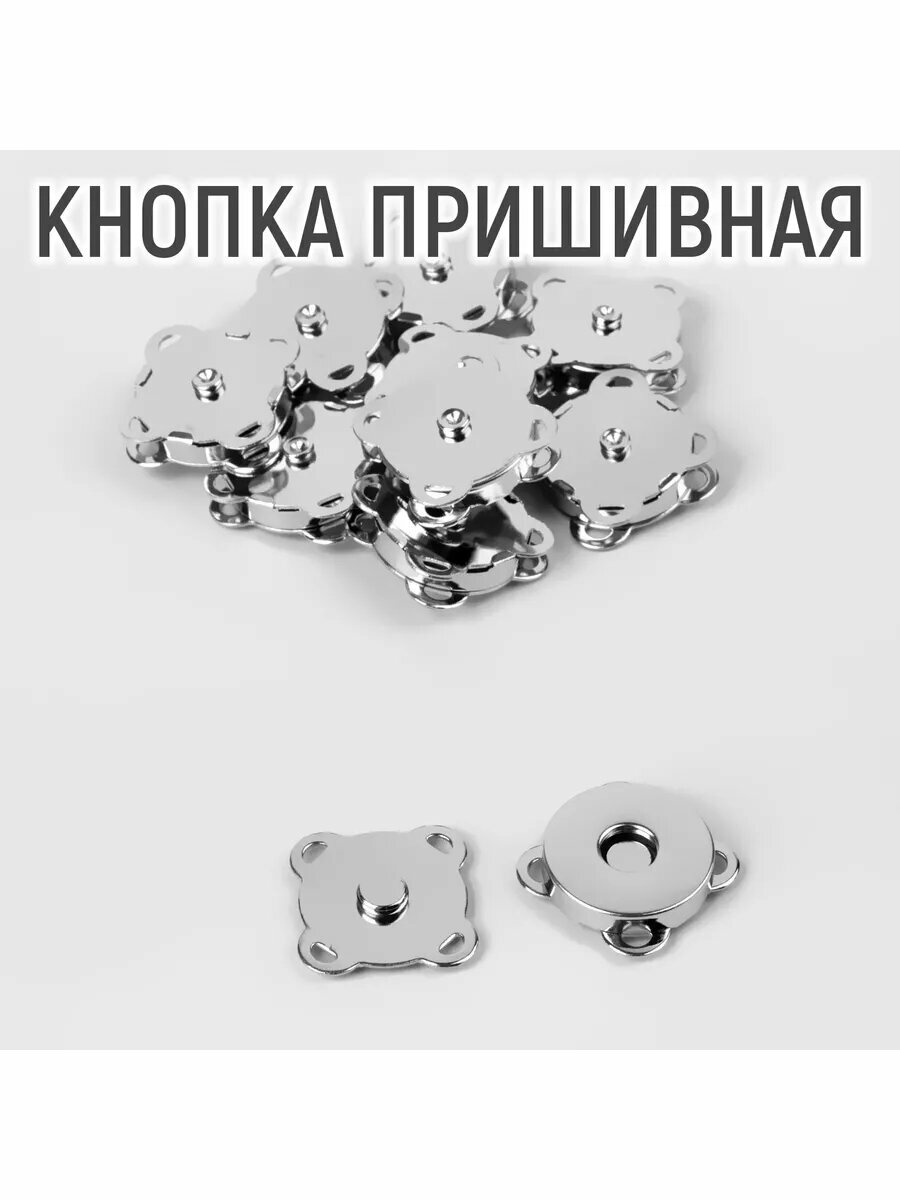 Купить Кнопки магнитные, пришивные, d = 18 мм, 10 шт, цвет серебряный