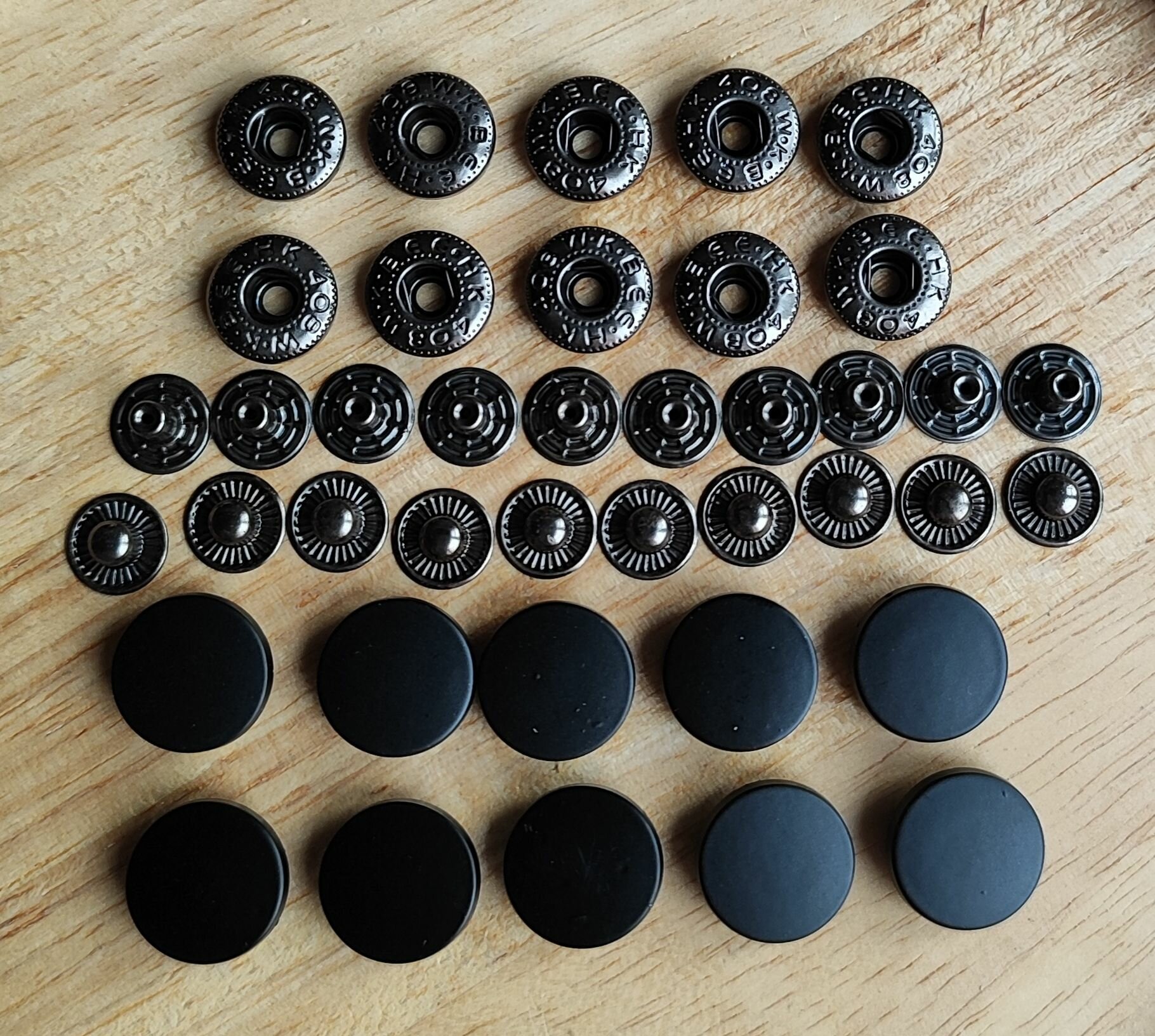 Застежка для одежды металлическая. Установочные кнопки черные, матовые d 17 мм. 40 шт.(10 комплектов) интересное: