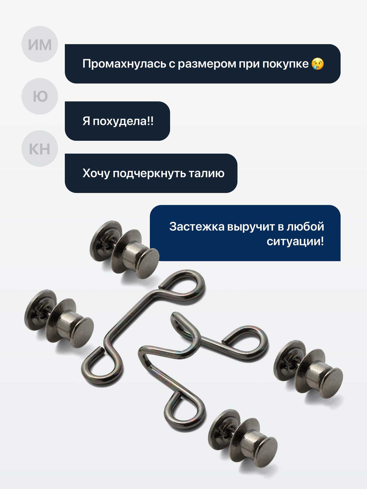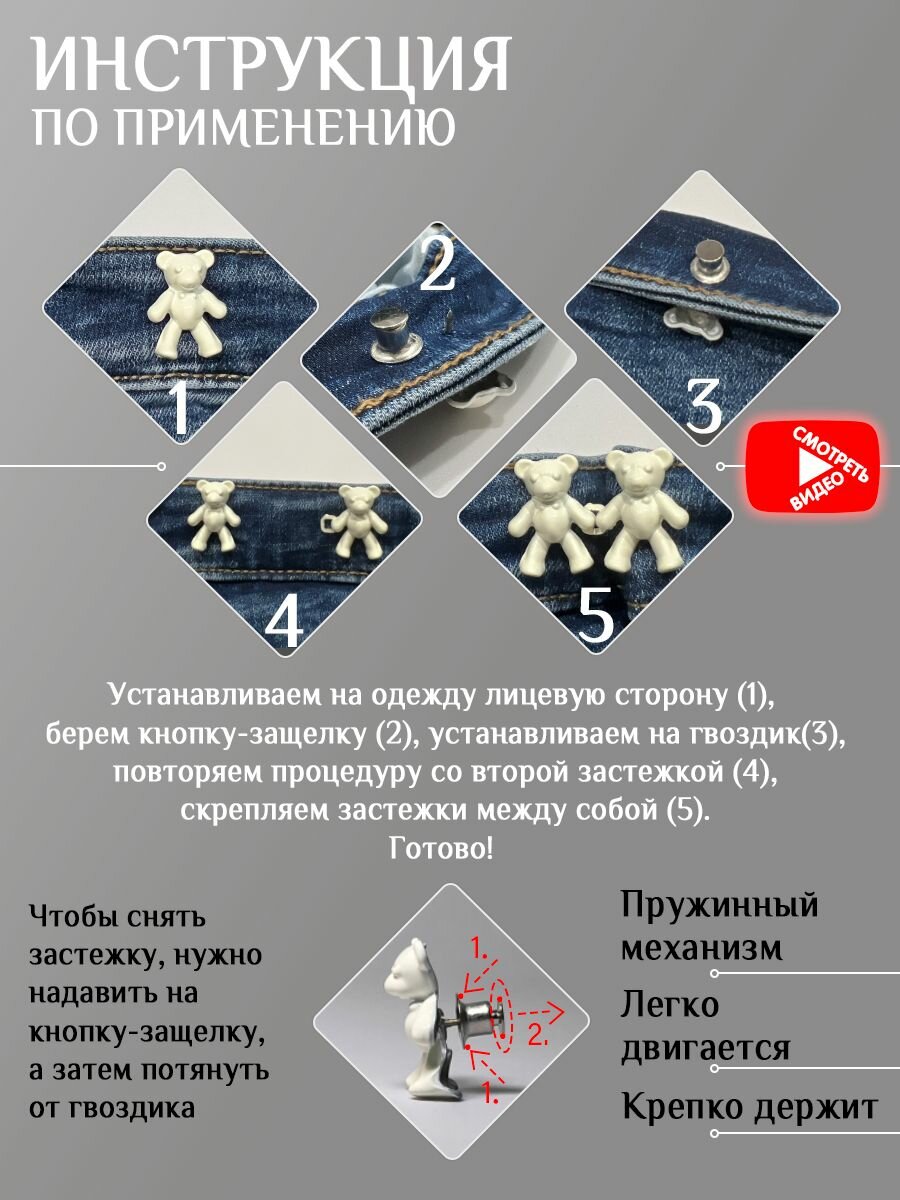 | Подробная комплектация | Застежка для уменьшения брюк - 2 шт |