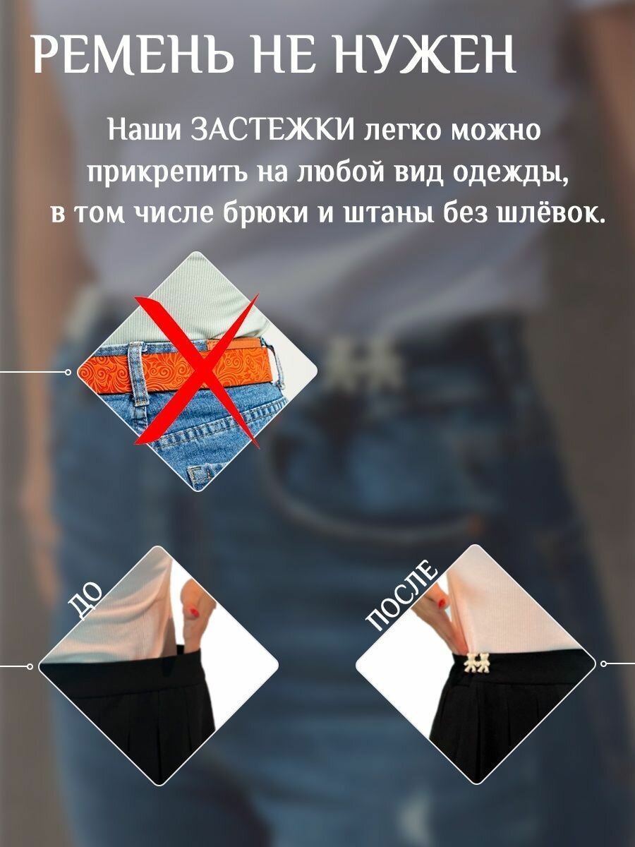 Застежки для уменьшения размера в талии, JewelryMeverly, Ремень женский для джинс, брюк/ Уменьшитель талии, Серебро, 2 шт