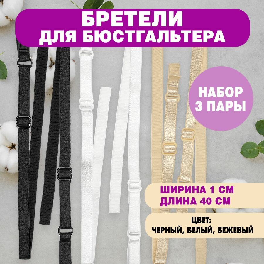 Купить Бретели для бюстгальтера 10 мм, 3 пары, черные, белые, бежевые