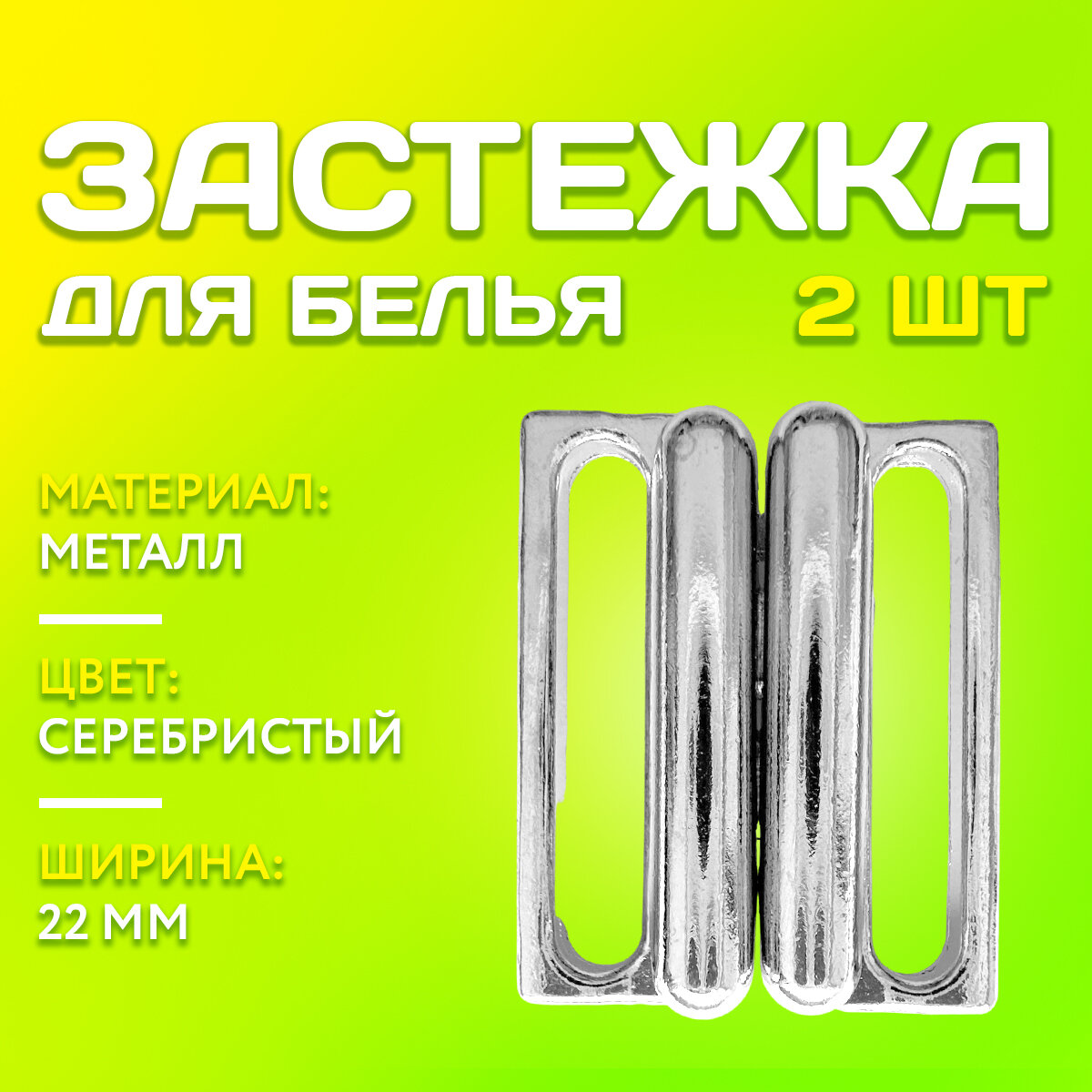 Купить Пряжка-застежка для купальника или белья, 2 шт, 22 мм, металл, цвет серебристый