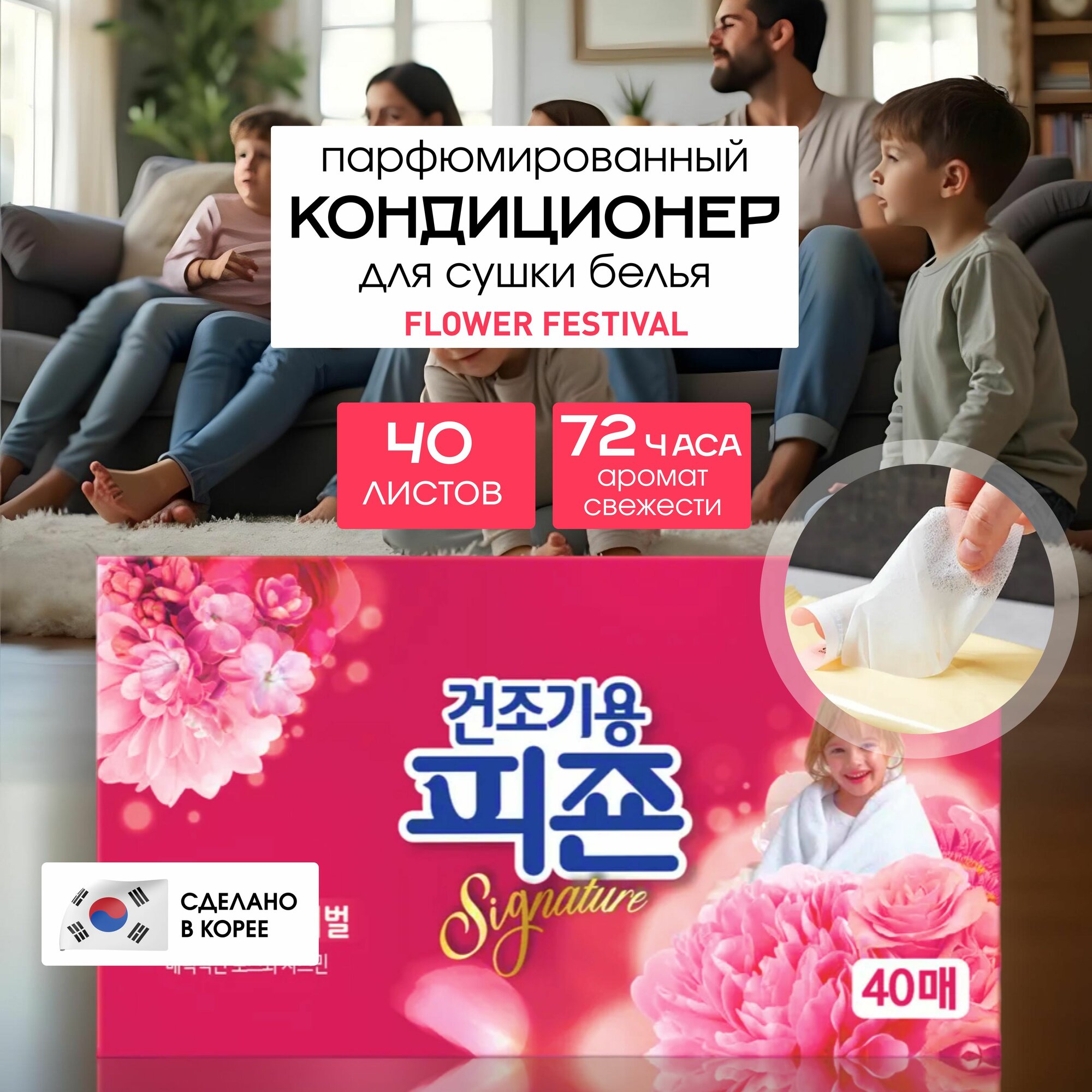 PIGEON RICH PERFUME SIGNATURE DRYER SHEET Flower Festival new nov Кондиционер в салфетках для сушки белья 40шт