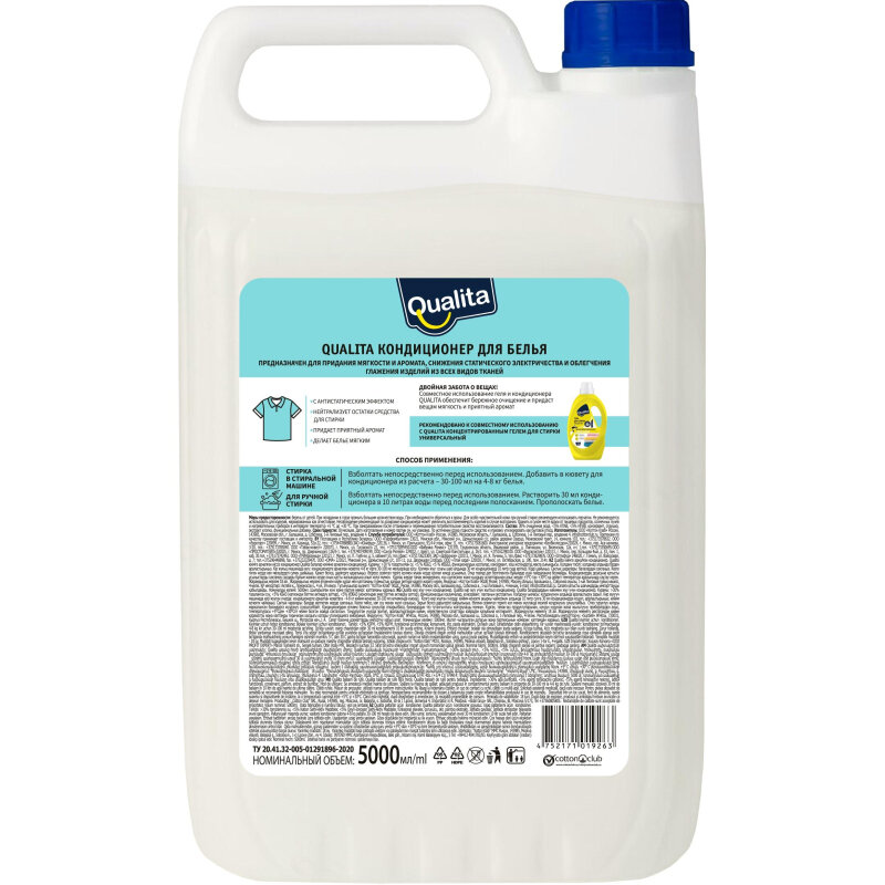 Кондиционер для белья 5 л Кристальный бриз, QUALITA