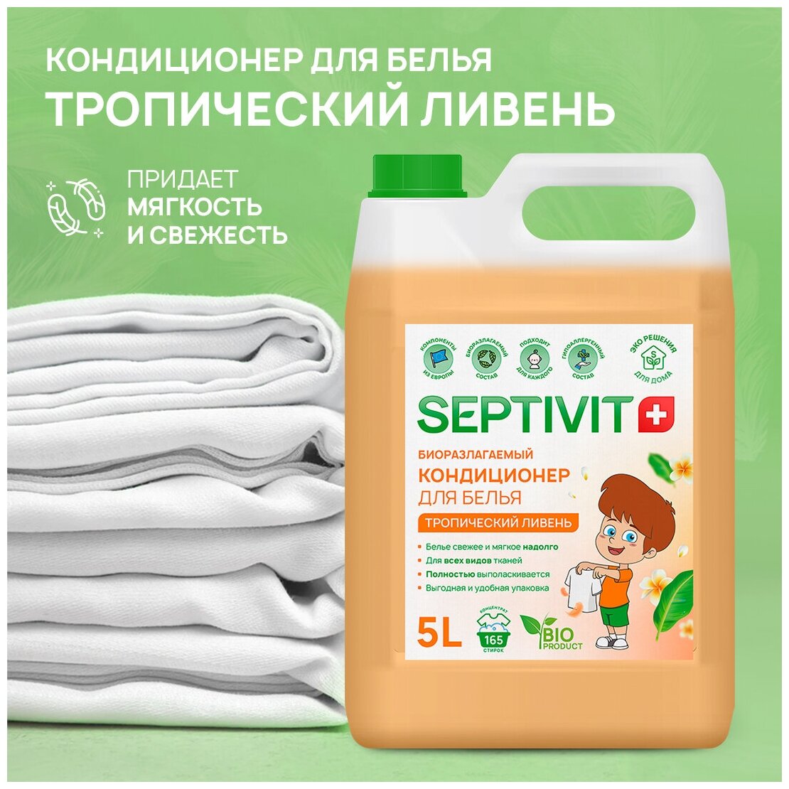 Кондиционер для белья SEPTIVIT / Ополаскиватель для белья Септивит / Кондиционер для белья детский / Тропический ливень, 5 литров