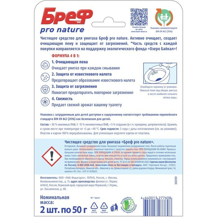 Блок для унитаза Bref pro nature Сила Актив "Океан", 2 шт х 50 гр интересное: