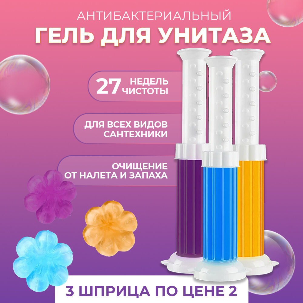 Купить Набор гель для унитаза в шприце 3шт., стикеры, таблетки, очиститель, освежитель