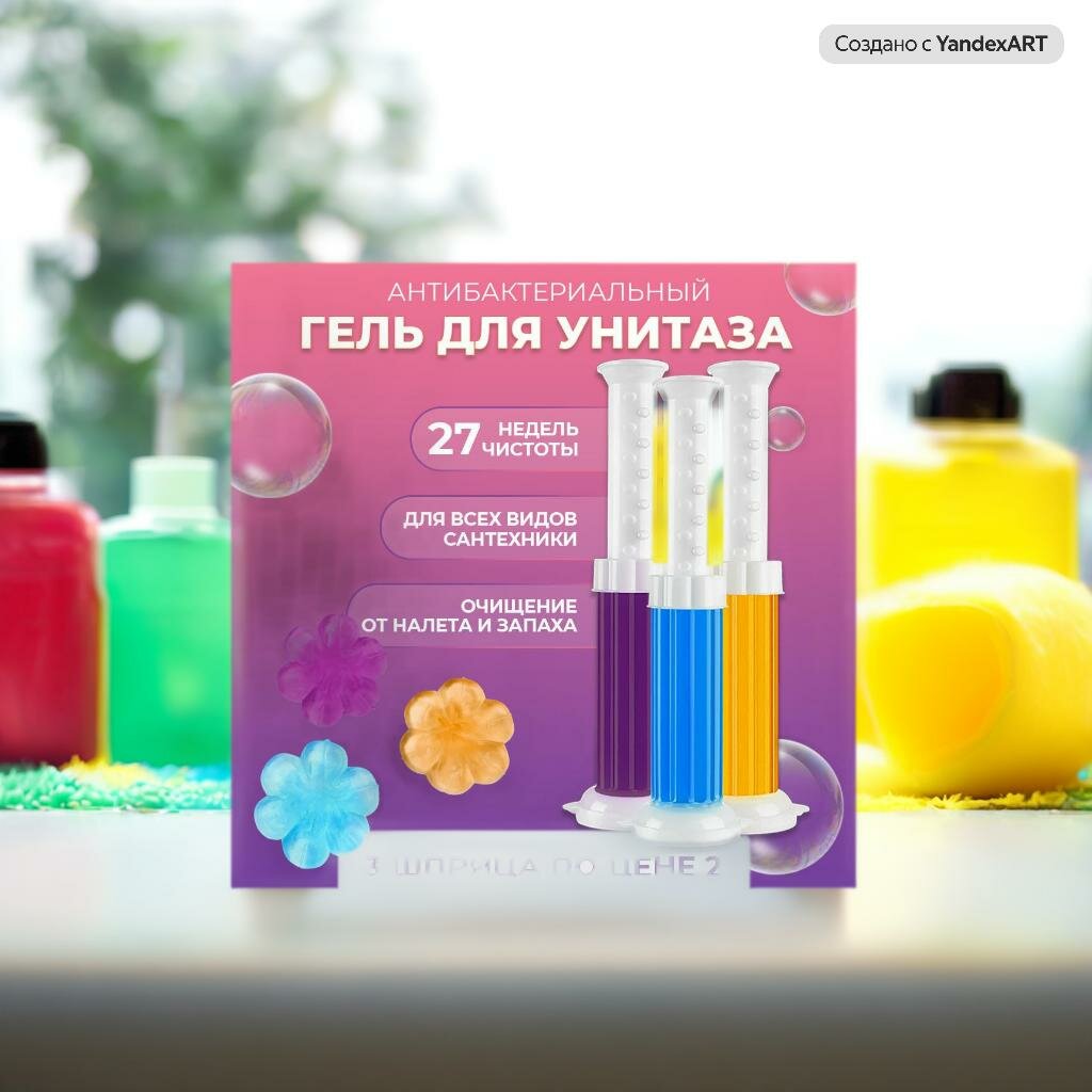 Набор гель для унитаза в шприце 3шт., стикеры, таблетки, очиститель, освежитель интересное: