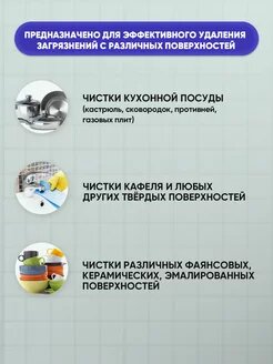 | Назначение | для духовых шкафов / для кофеварки/кофемашины / для кухонных плит / для линолеума / для межплиточных швов / для металлических поверхностей / для писсуара / для пластика / для сантехники / для удаления накипи / для холодильника / для эмалированных поверхностей |
