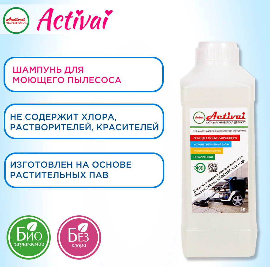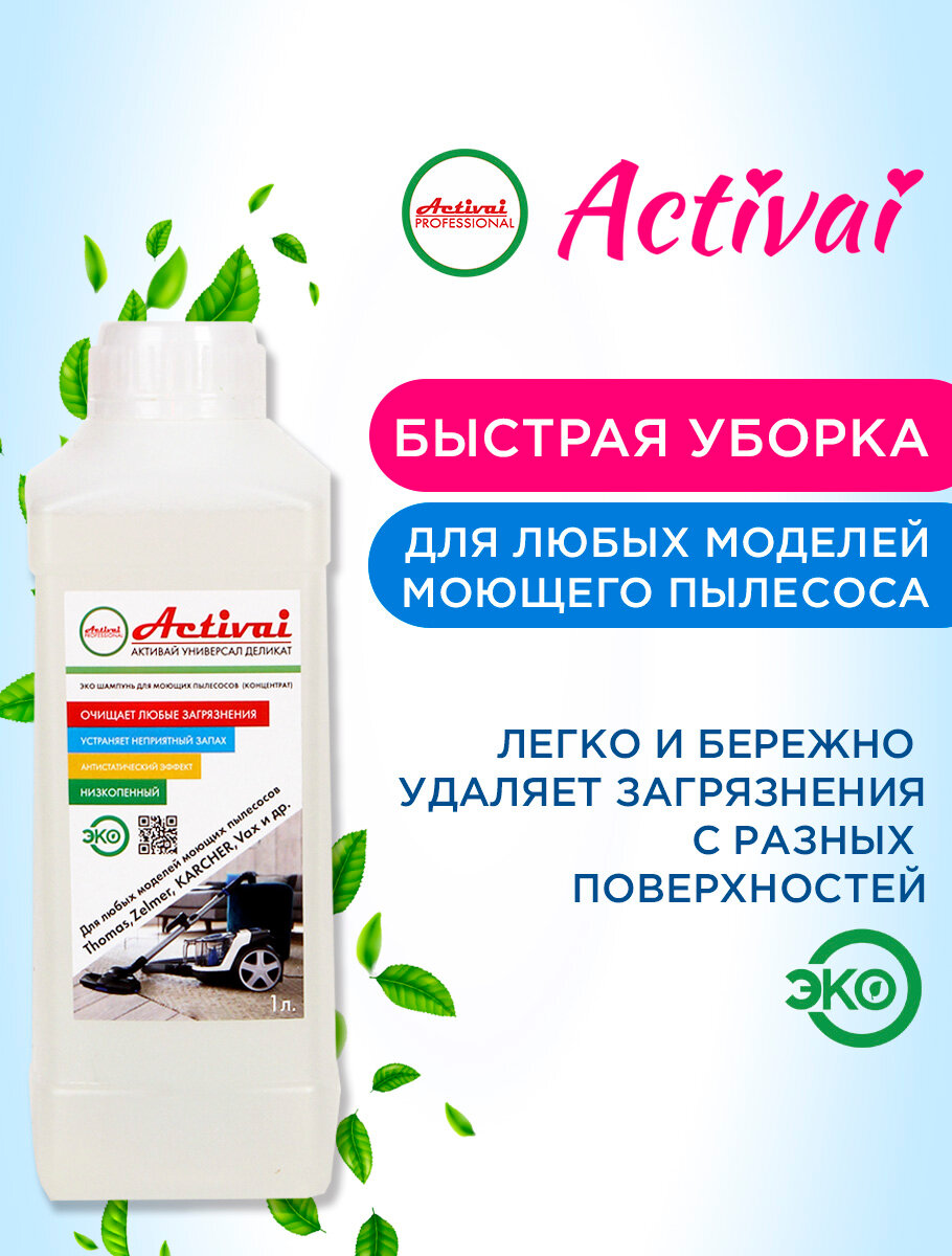 Средство для моющего пылесоса Thomas, Karcher, Bosh, Zelmer, средство для мытья пола, средство для чистки ковров, пятновыводитель, средство для чистки мягкой мебели, шампунь для моющих пылесосов, бытовая химия, концентрат, 1 л. Activai PROFESSIONAL