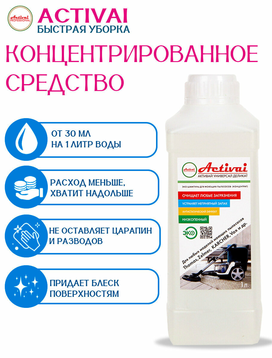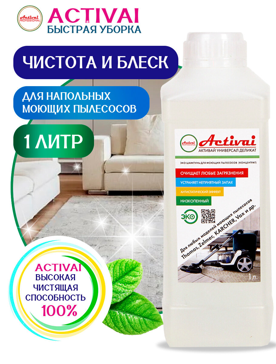 Купить Средство для моющего пылесоса Thomas, Karcher, Bosh, Zelmer, средство для мытья пола, средство для чистки ковров, пятновыводитель, средство для чистки мягкой мебели, шампунь для моющих пылесосов, бытовая химия, 1 литр. Быстрая уборка Activai PROFESSIONAL