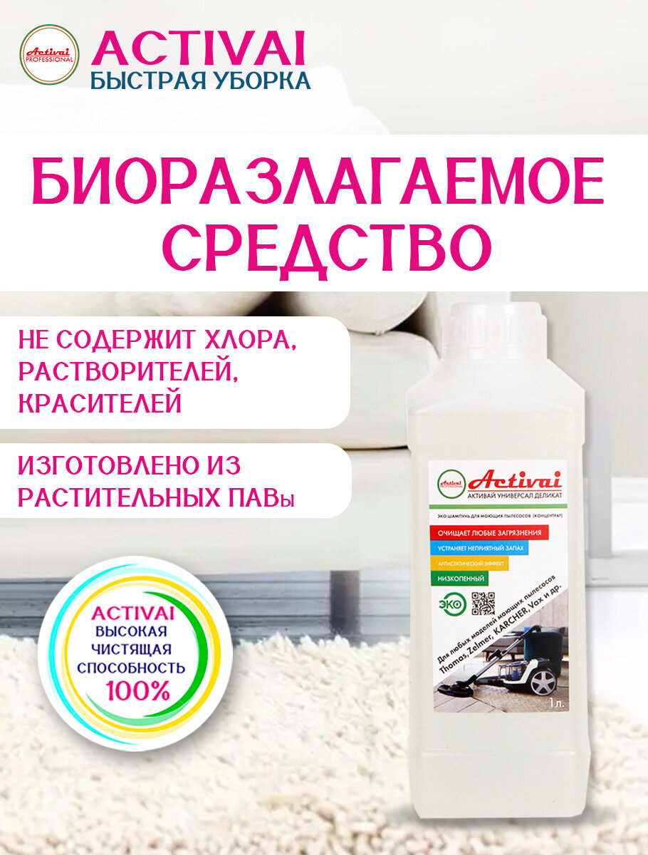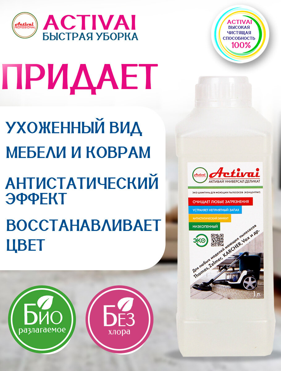СохранитьСредство для моющего пылесоса Thomas, Karcher, Bosh, Zelmer, средство для мытья пола, средство для чистки ковров, пятновыводитель, средство для чистки мягкой мебели, шампунь для моющих пылесосов, бытовая химия, 1 литр. Быстрая уборка Activai PROFESSIONAL интересное: