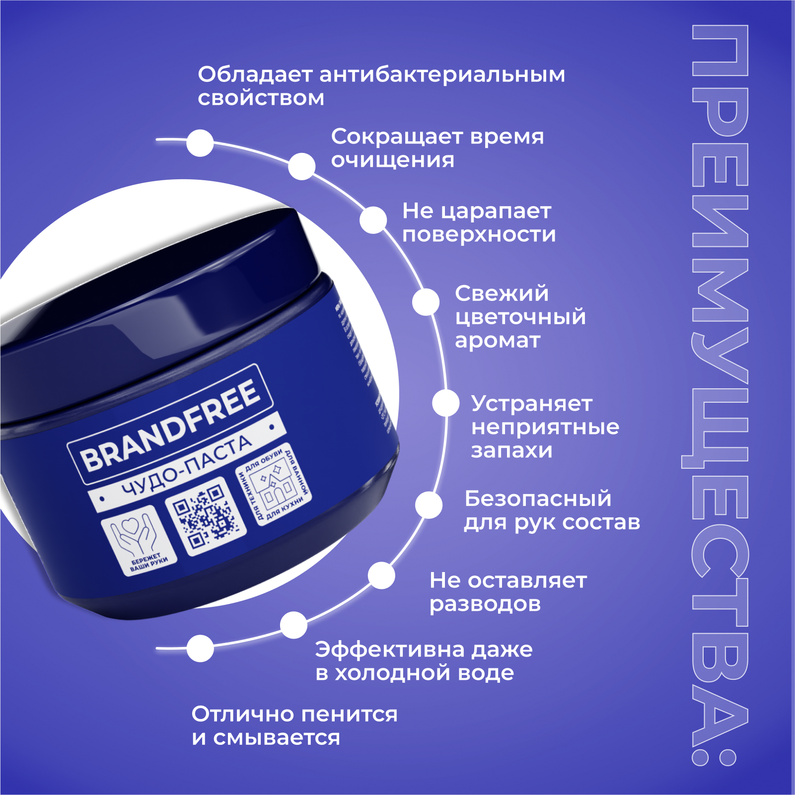 Универсальная чистящая паста для уборки BRANDFREE, пятновыводитель для твёрдых поверхностей, 500 г