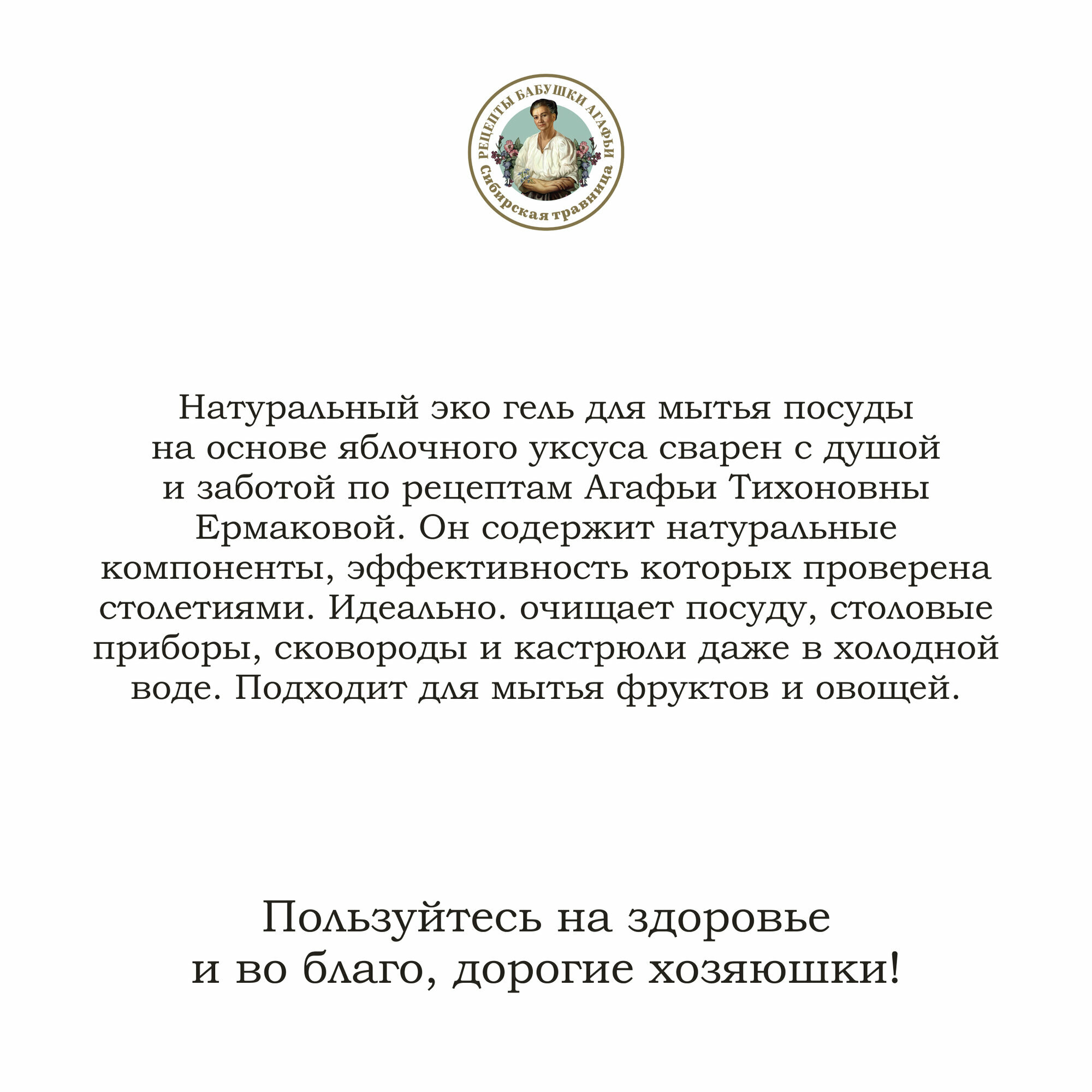 Гель для посуды Рецепты бабушки Агафьи Для Хозяюшек на основе яблочного уксуса Натуральный ЭКО, 500 мл интересное:
