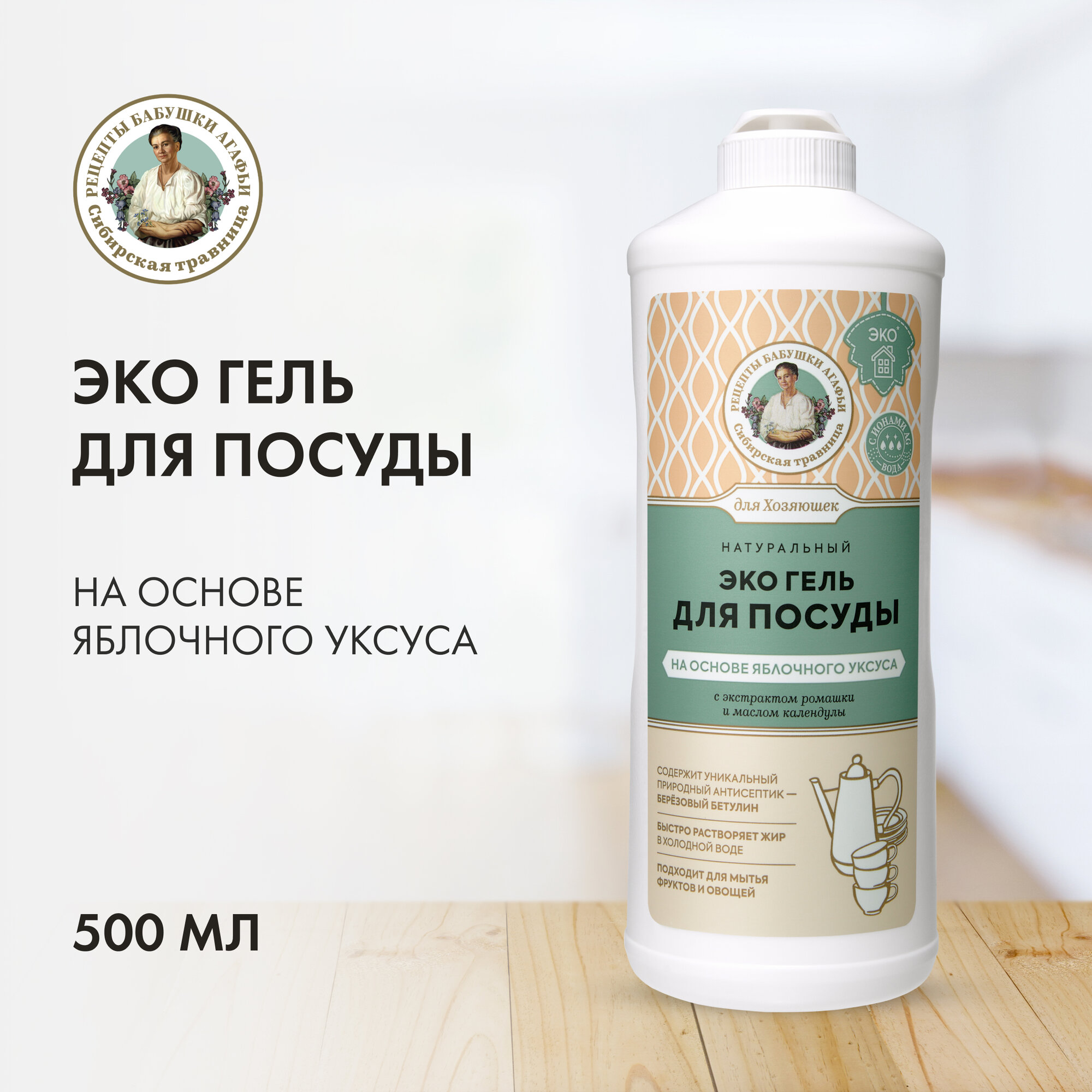 Купить Гель для посуды Рецепты бабушки Агафьи Для Хозяюшек на основе яблочного уксуса Натуральный ЭКО, 500 мл