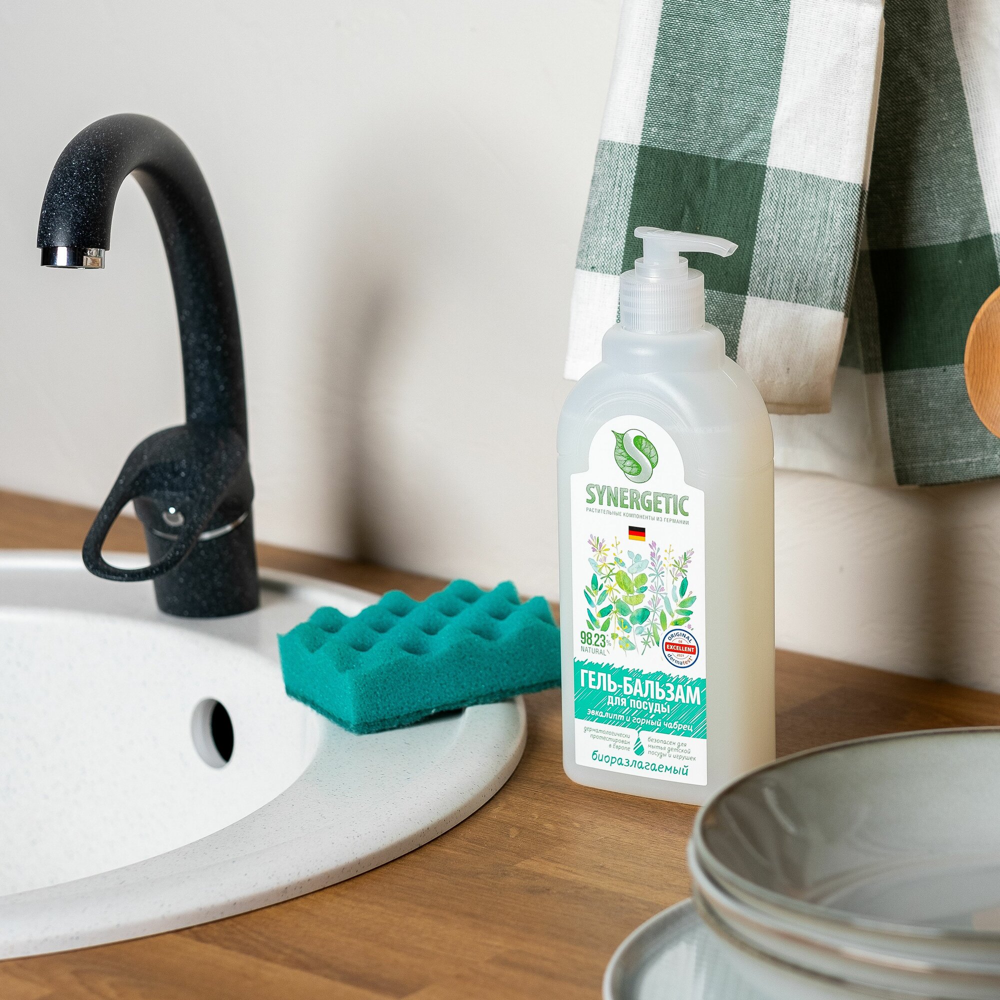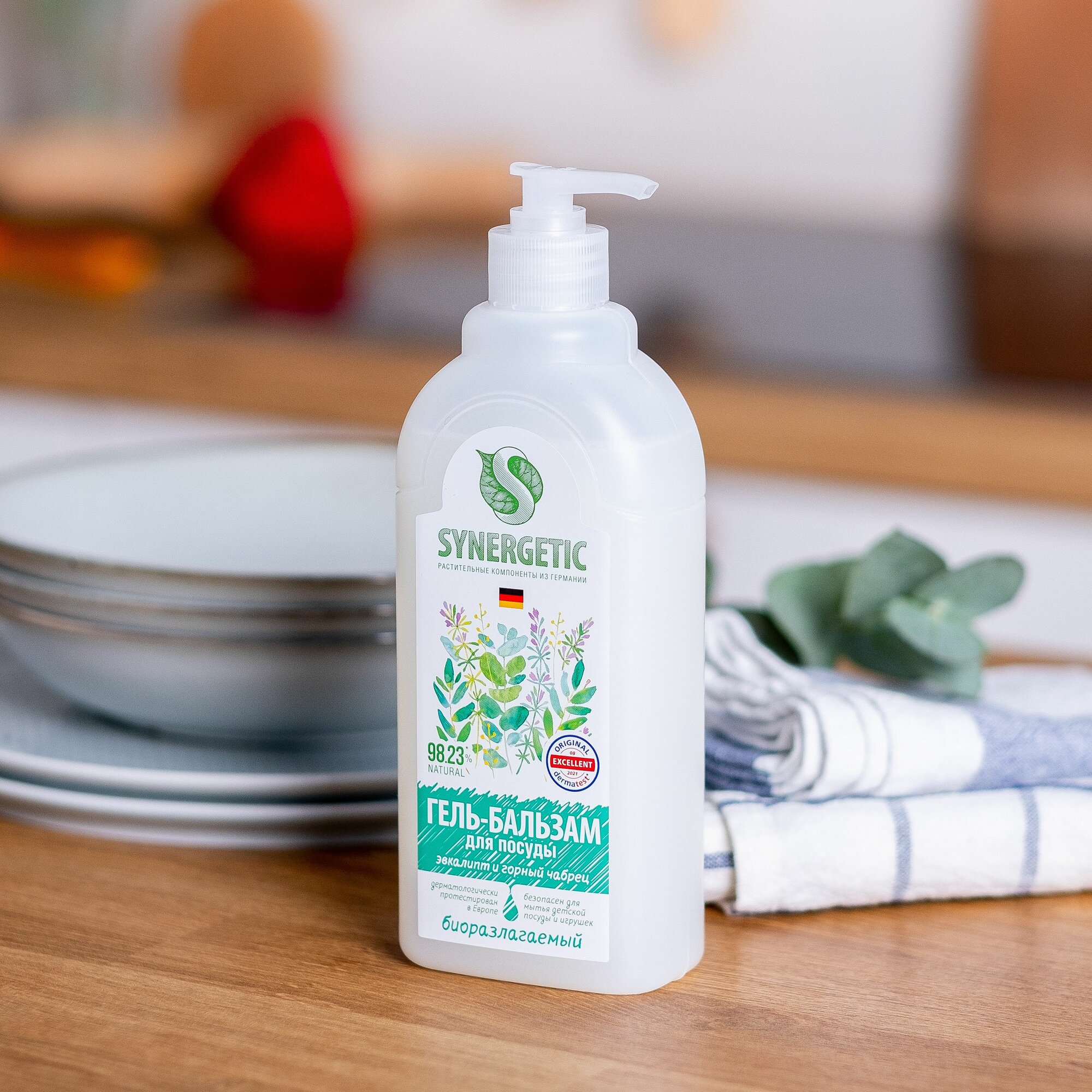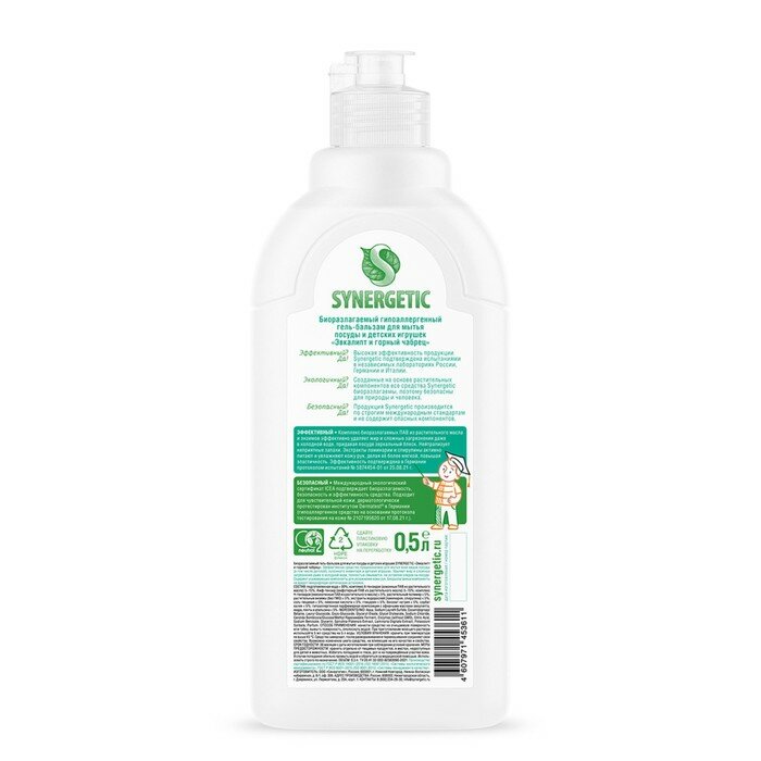 Гель-бальзам для мытья посуды Synergetic Эвкалипт и Горный Чабрец, гипоаллергенный, 500 мл