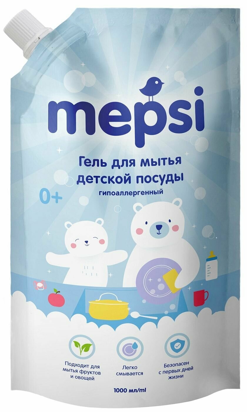 Купить Средство для мытья детской посуды MEPSI гель 1л. Гель жидкость для мытья детской посуды и игрушек