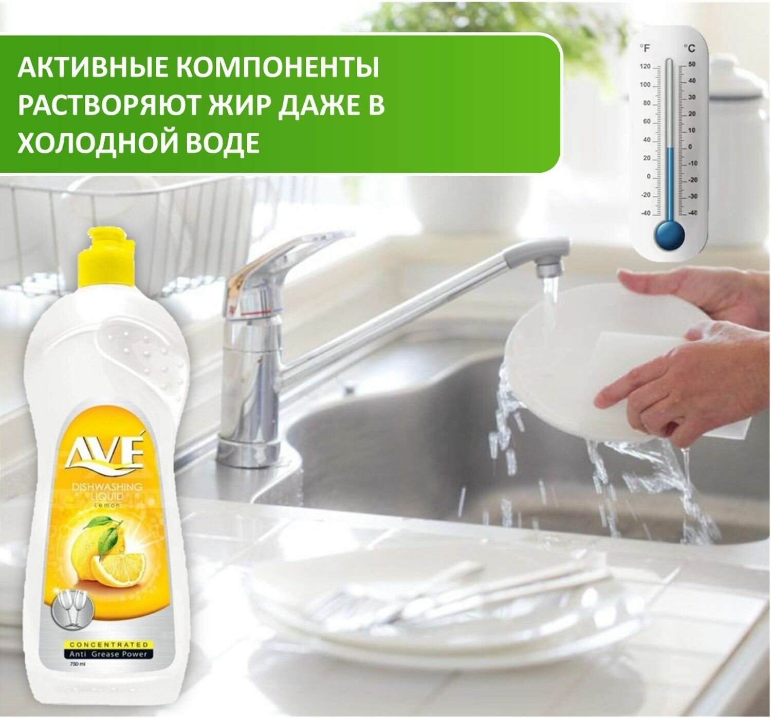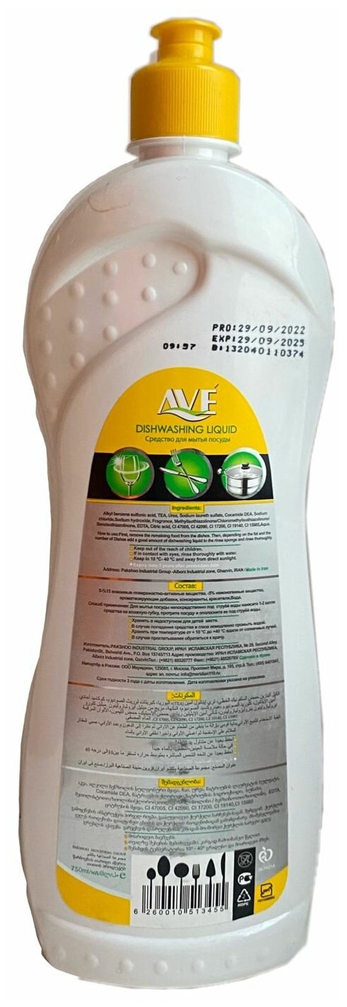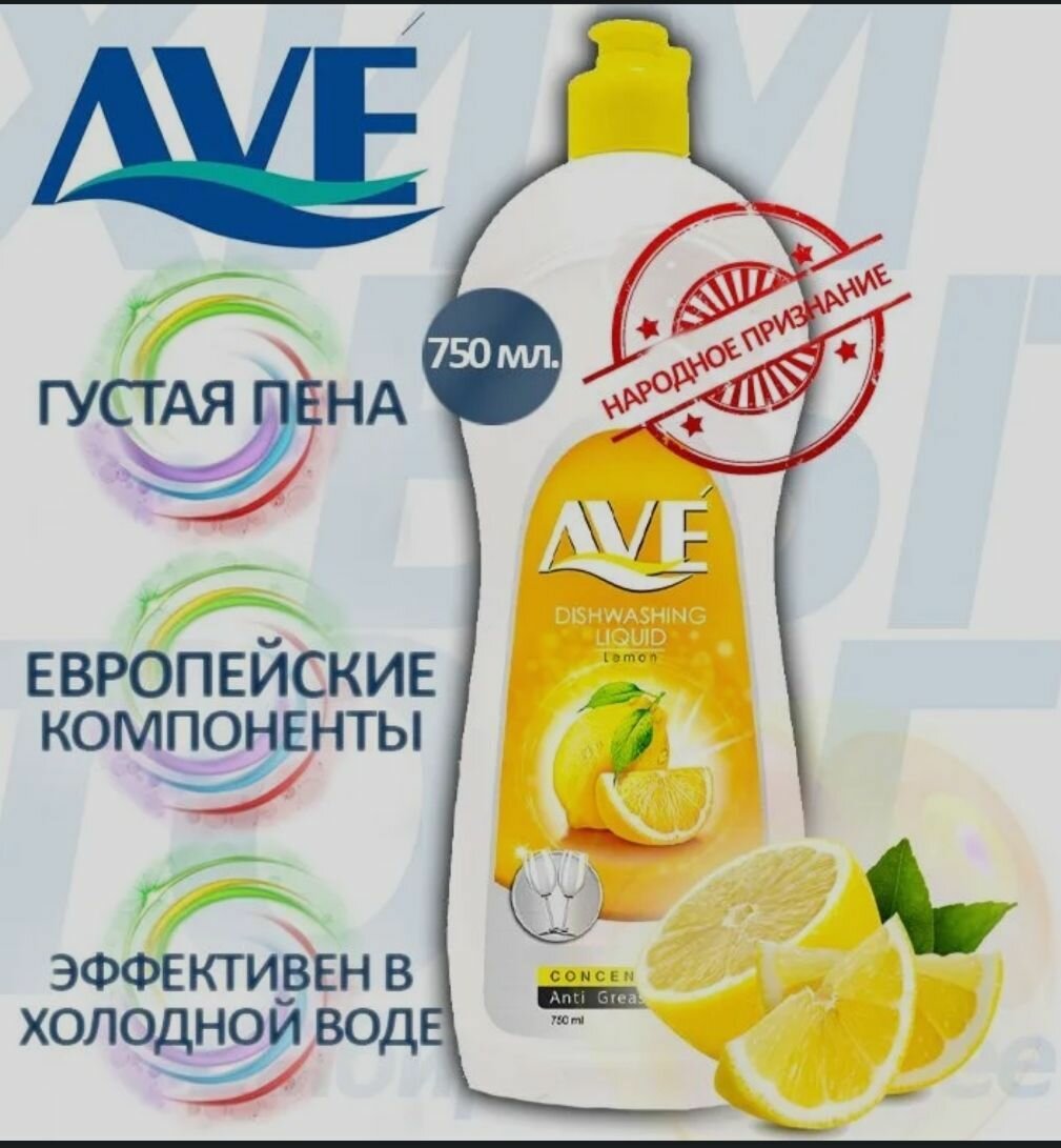 AVE Жидкость для мытья посуды Лимон 750мл