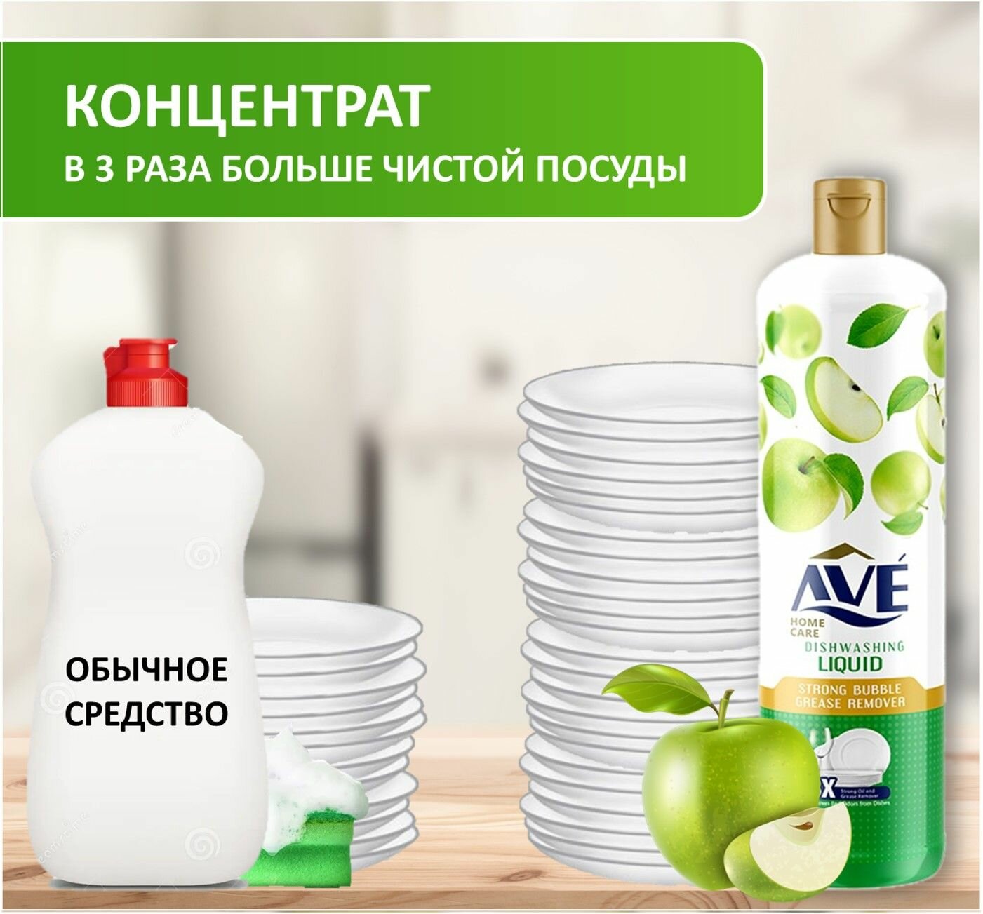 AVE Cредство для мытья посуды Яблоко, концентрированное, 750 мл