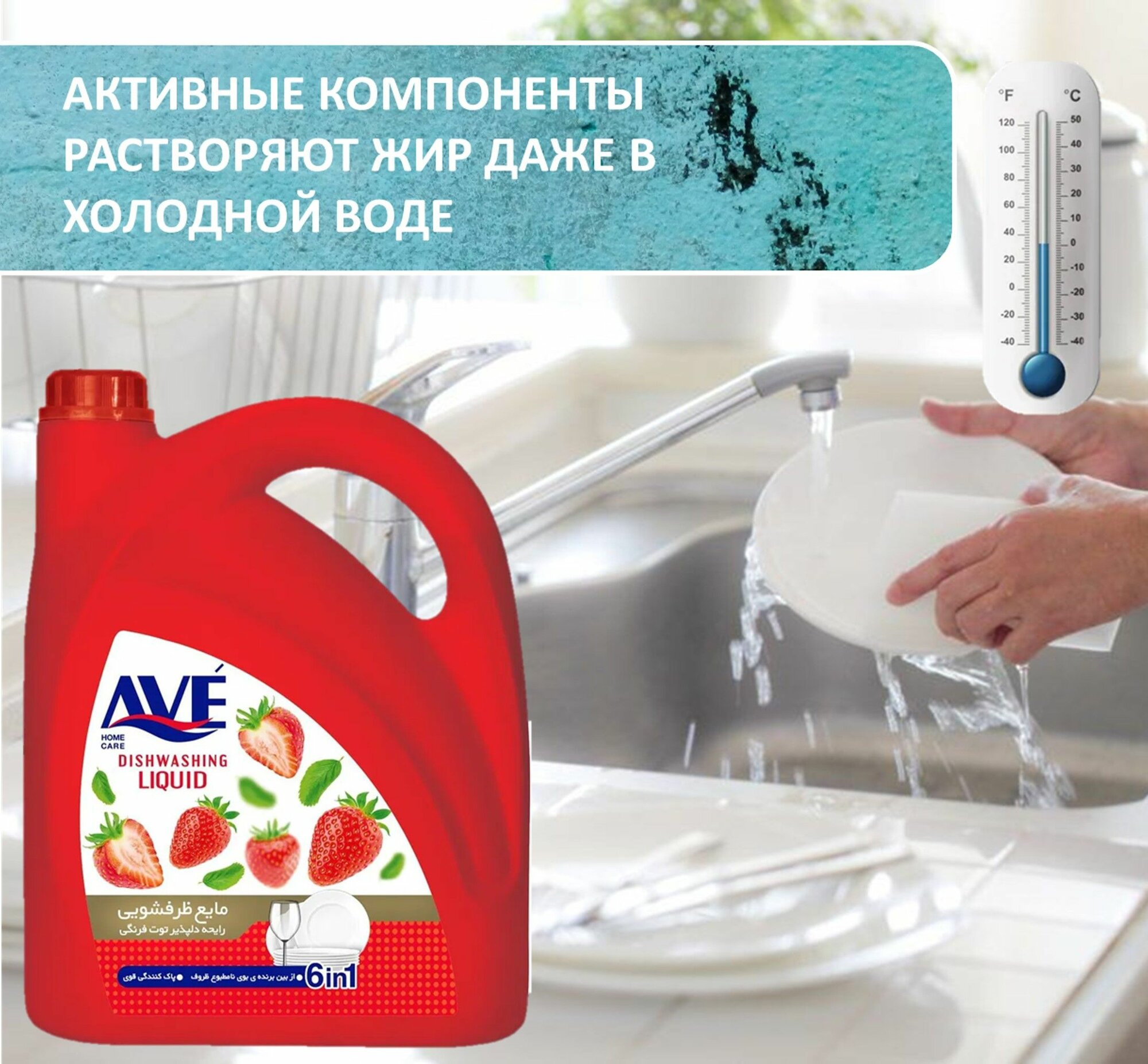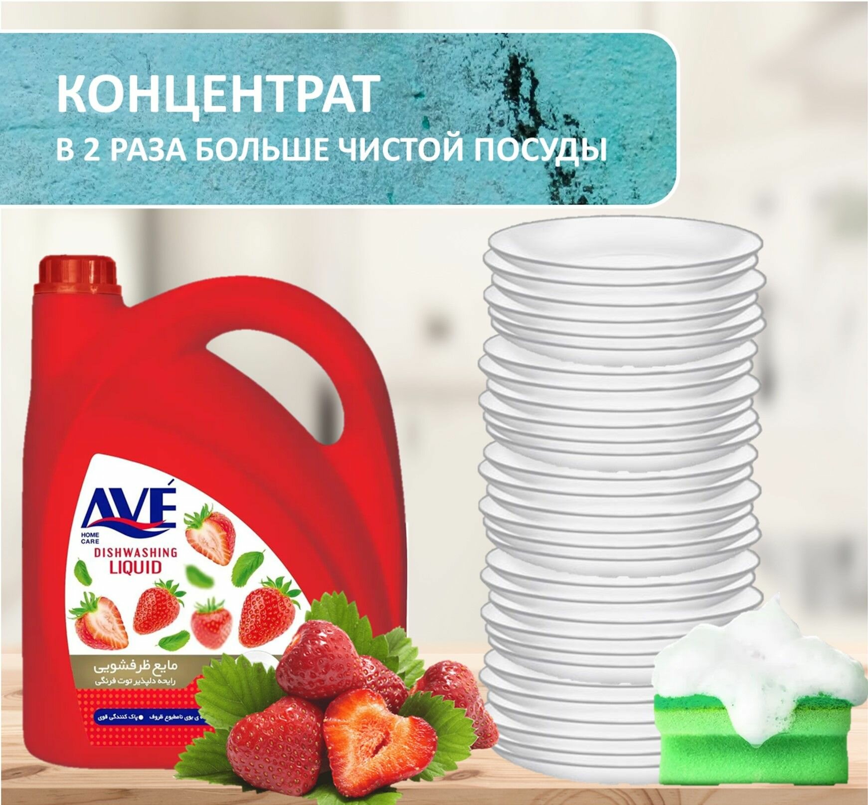 Cредство для мытья посуды AVE, концентрированное, Клубника 900мл