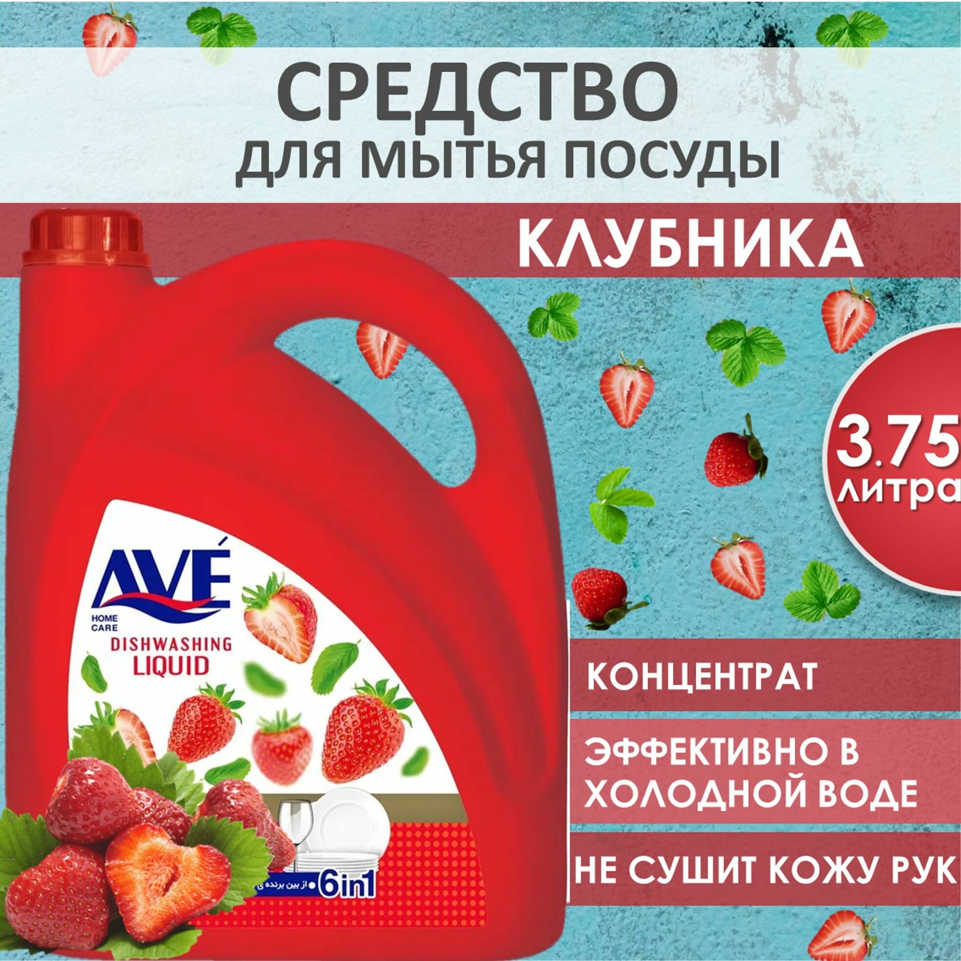 AVE, Средство для мытья посуды, клубника, 3750 мл