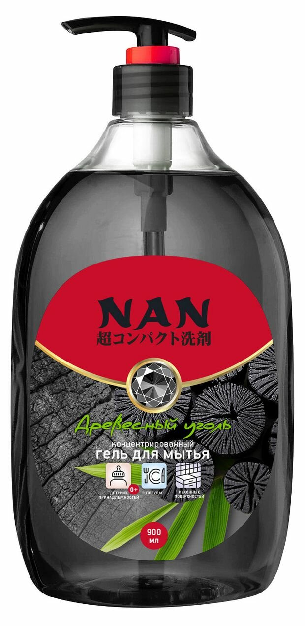 NAN Гель для мытья посуды Древесный Уголь с дозатором, 0.9 л интересное: