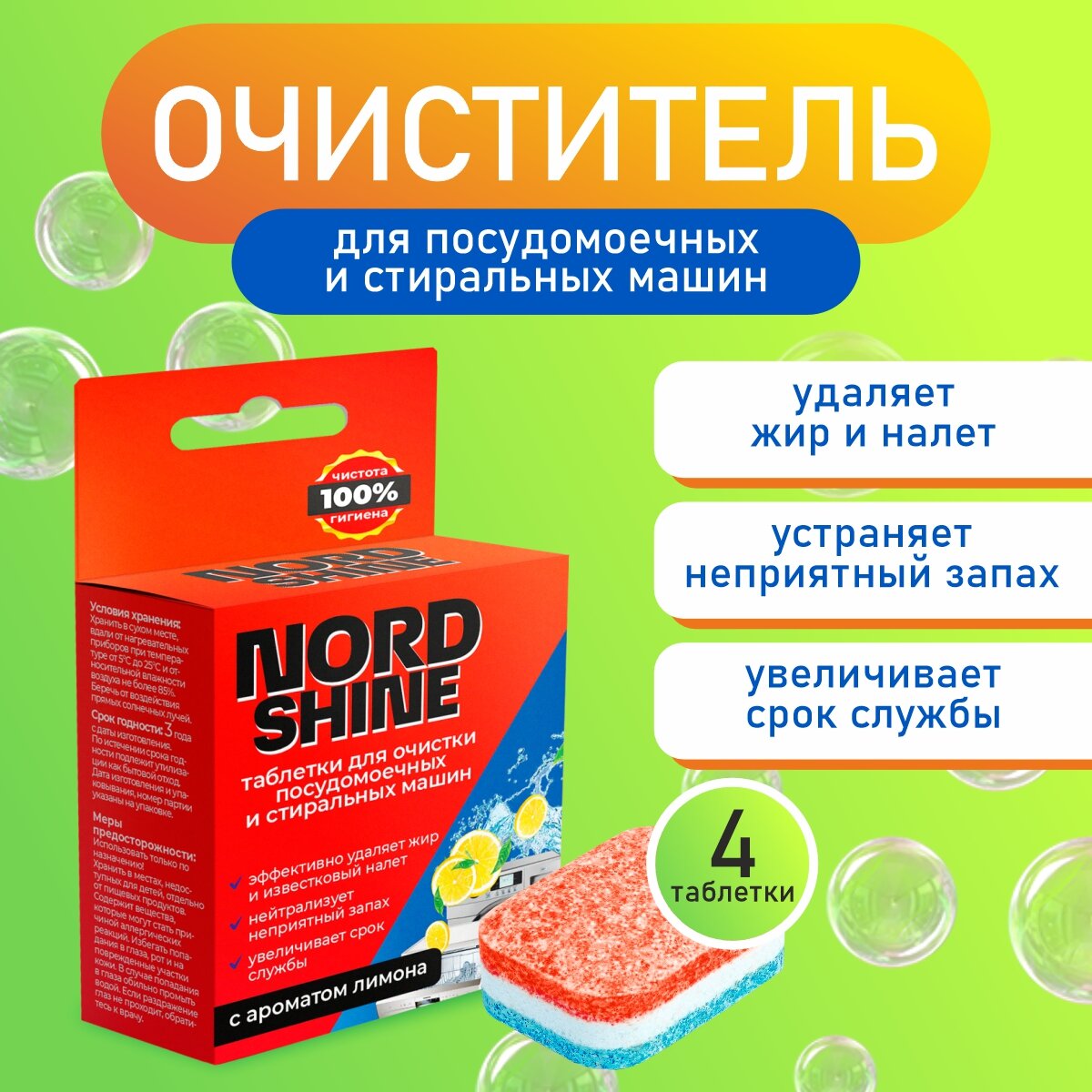 Купить Таблетки для очистки посудомоечных и стиральных машин 4 штуки