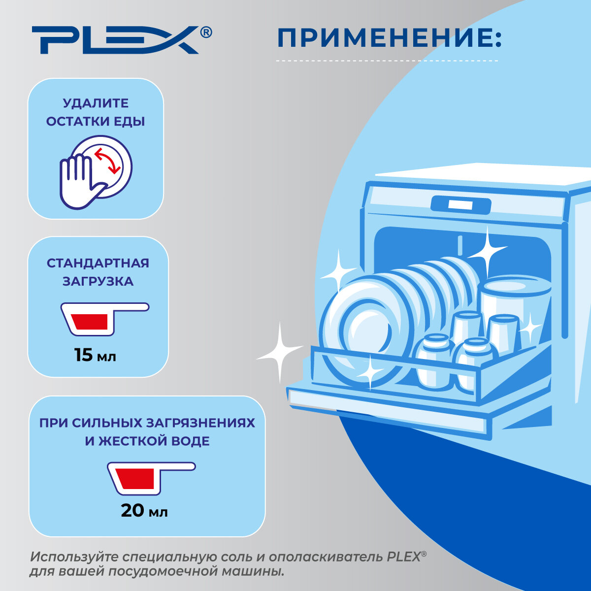 | Способ применения | Предварительно очистите посуду от остатков еды. Заполните специальный отсек посудомоечной машины рекомендуемым количеством порошка. Используйте специальную соль и ополаскиватель PLEX для вашей посудомоечной машины. |