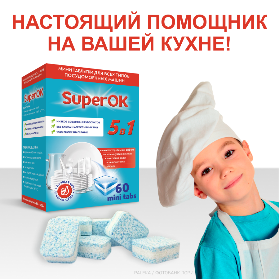 Мини таблетки для посудомоечной машины "SuperOK", 60 шт. интересное: