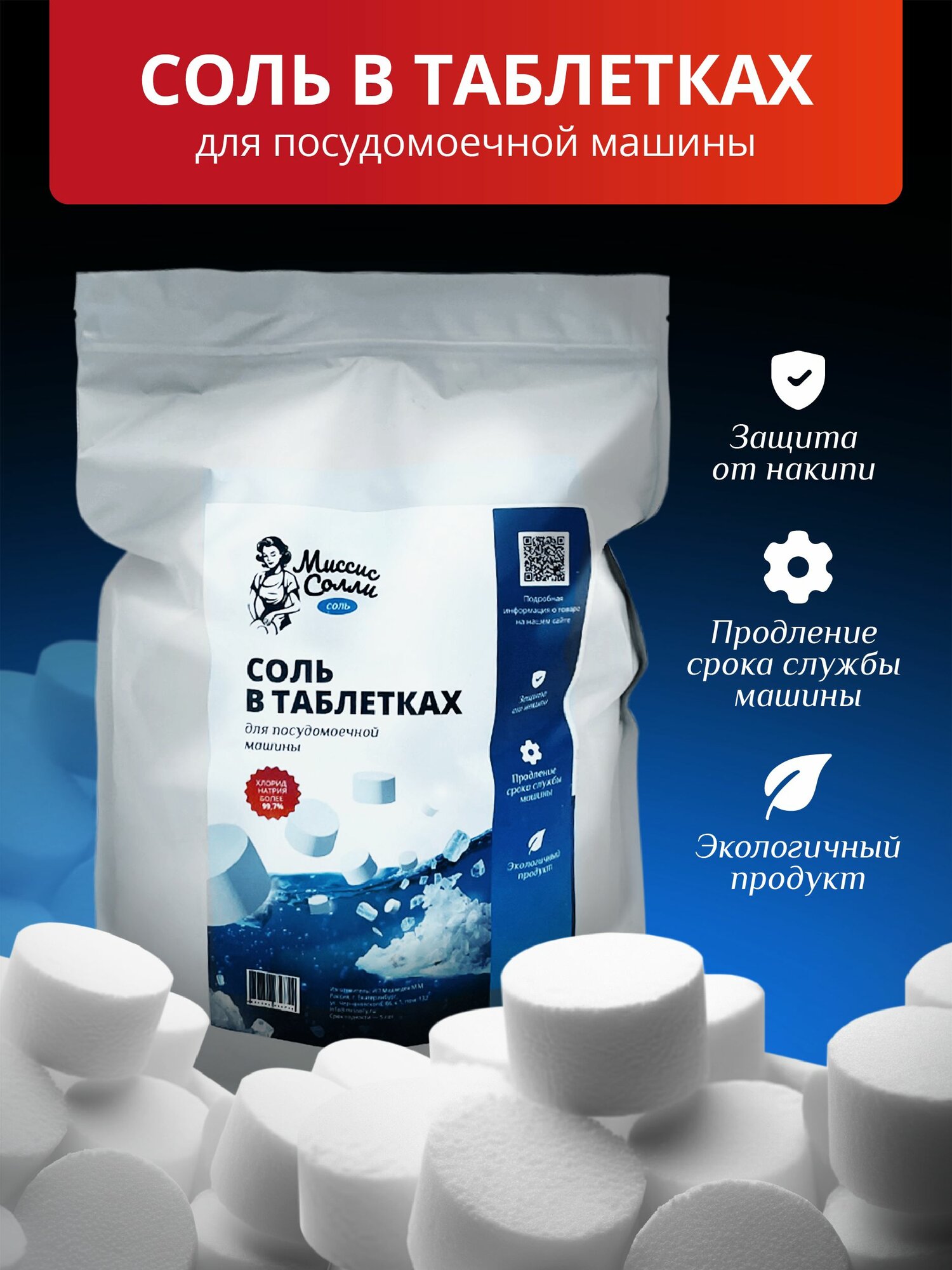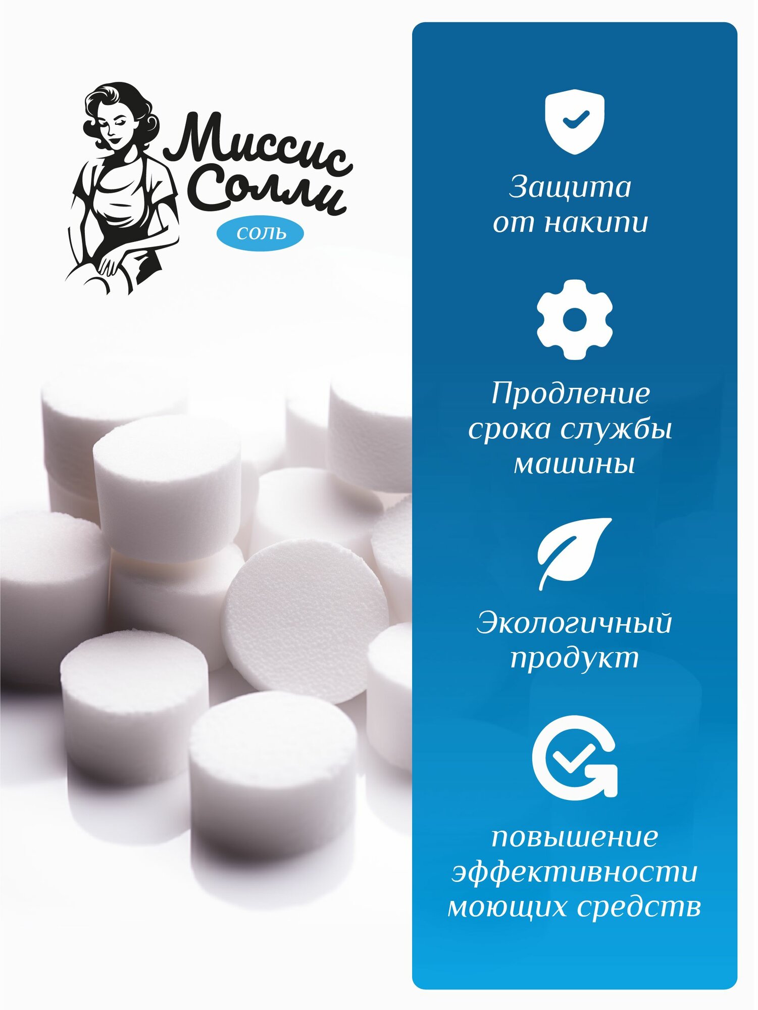 Купить Соль таблетированная для посудомоечной машины "Миссис Солли" 3 кг