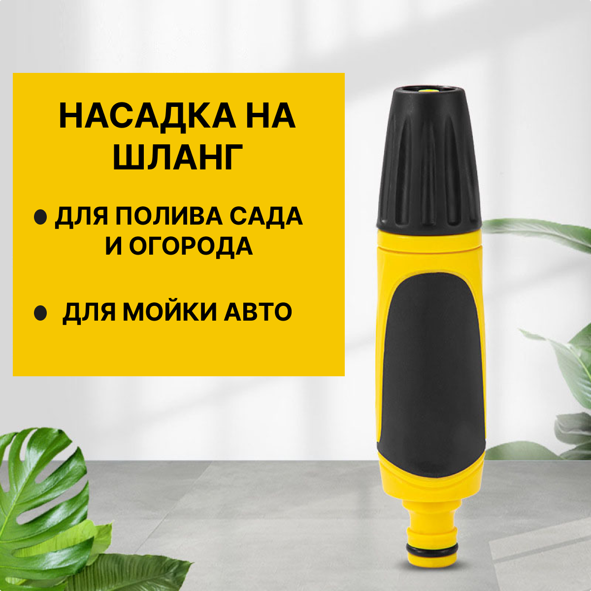 Насадка на шланг для полива профессиональная / Распылитель для полива / Пистолет садовый желтый интересное: