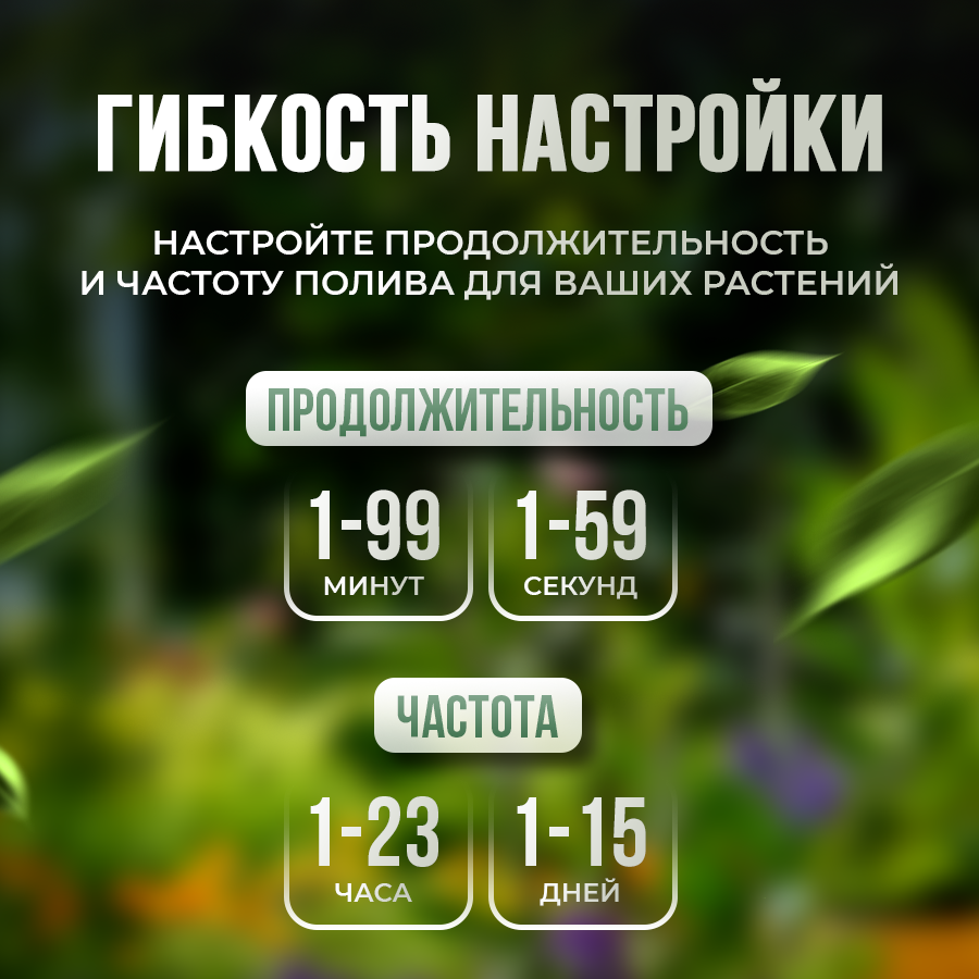 | Максимальная продолжительность полива | 99 мин. |