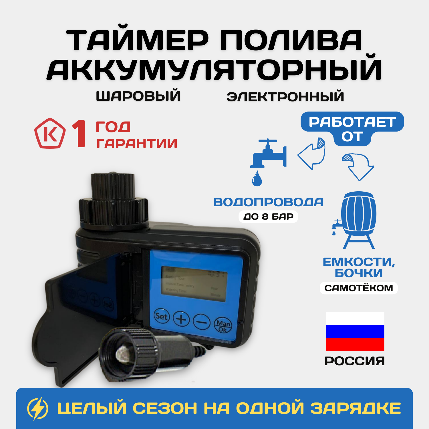 Таймер полива аккумуляторный шаровый электронный для капельного автоматического полива с ЖК-дисплеем, 1400 циклов от одной зарядки. интересное: