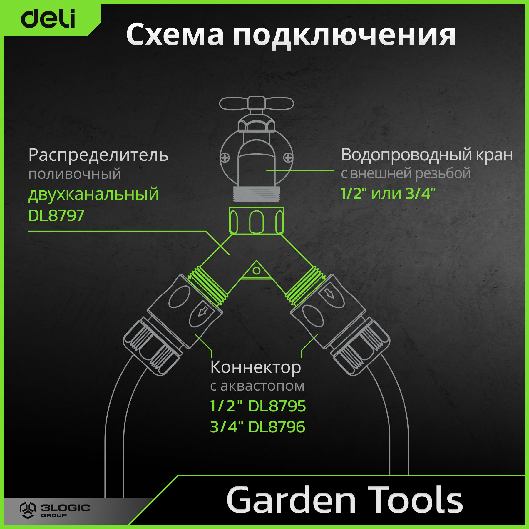 Распределитель поливочный двухканальный Deli DL8797 (1 и 3/4 дюйма, внутренняя резьба, 2 вентиля, ударопрочный ABS-пластик) интересное: