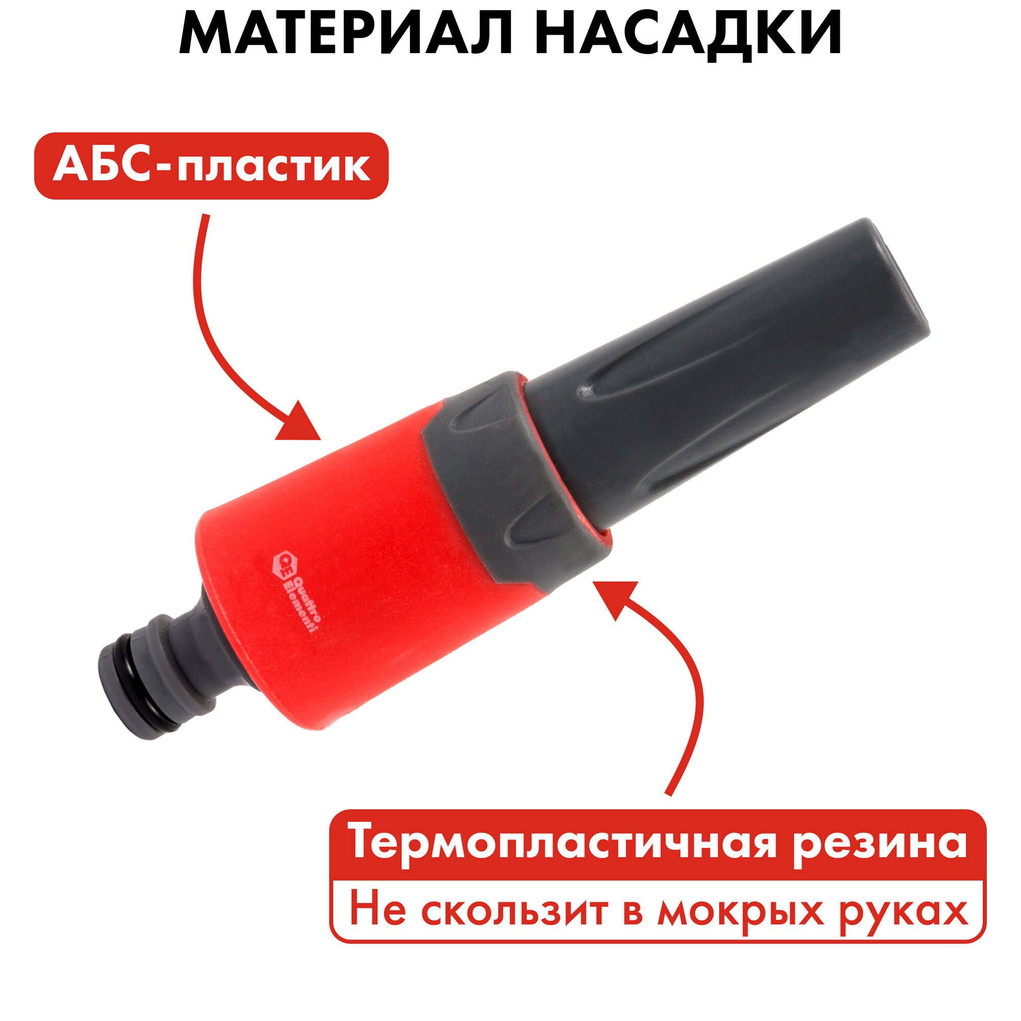 | Комплектация | Набор поливочный QUATTRO ELEMENTI 4 предмета. Соединитель 3/4"-2шт., штуцер 1/2" и 3/4", насадка поливочная, мягкий пластик, аквастоп |