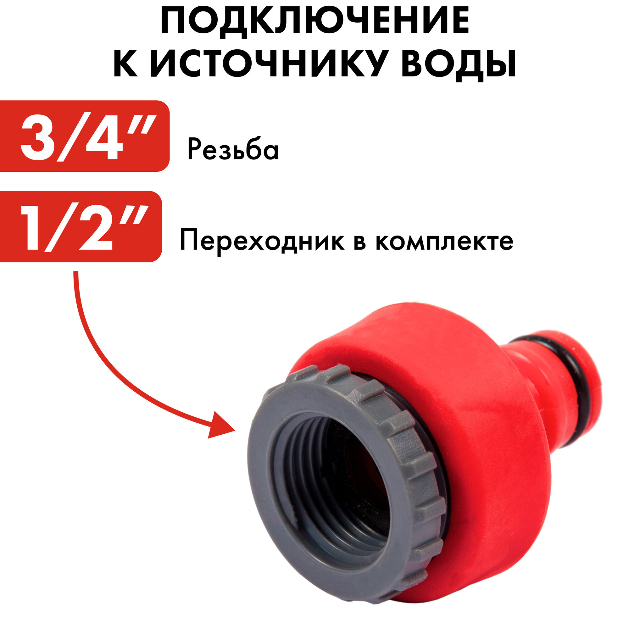 | Дополнительная информация | соединитель для 1/2'' и 3/4'', штуцер 1/2'' и 3/4'', насадка поливочная |