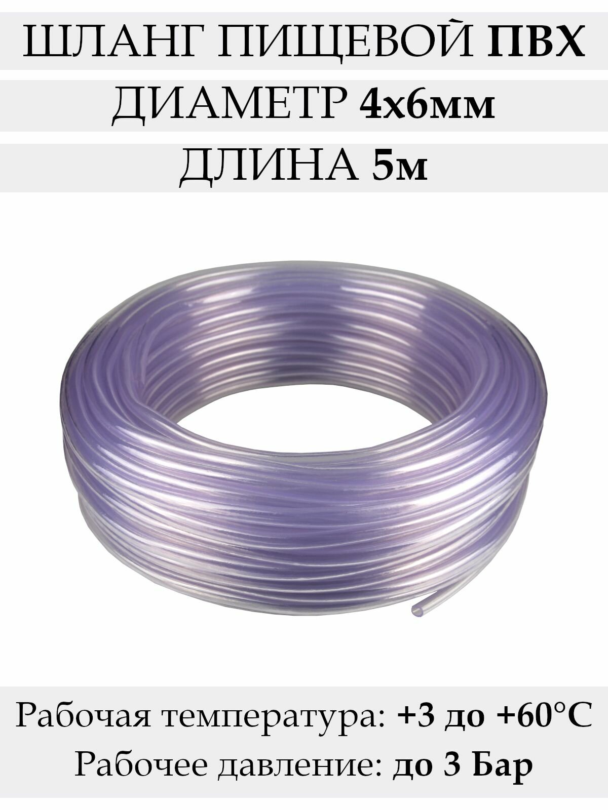 Шланг пищевой прозрачный 4х6 мм, 5 м, трубка пищевая гибкая интересное: