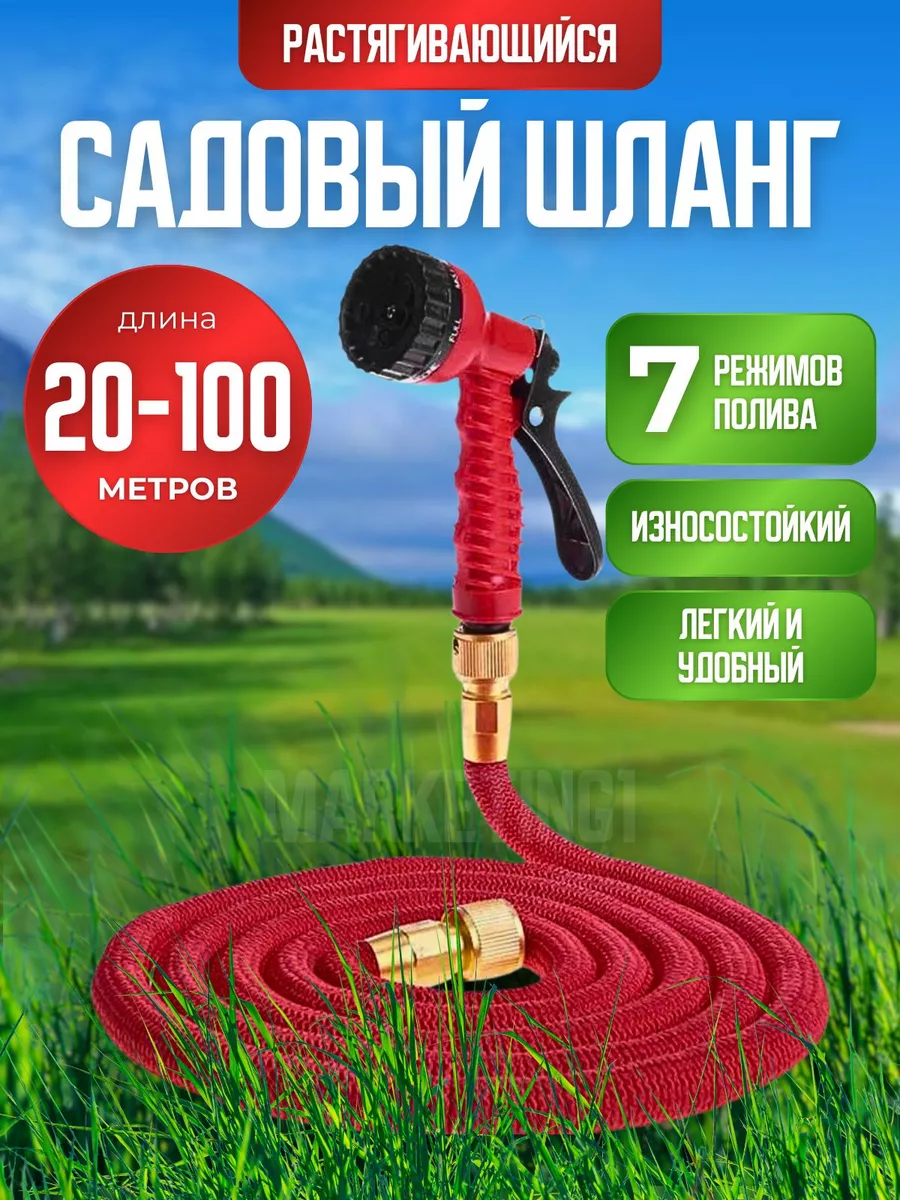 Садовый шланг 100 метров с пистолетом-распылителем Magic House интересное: