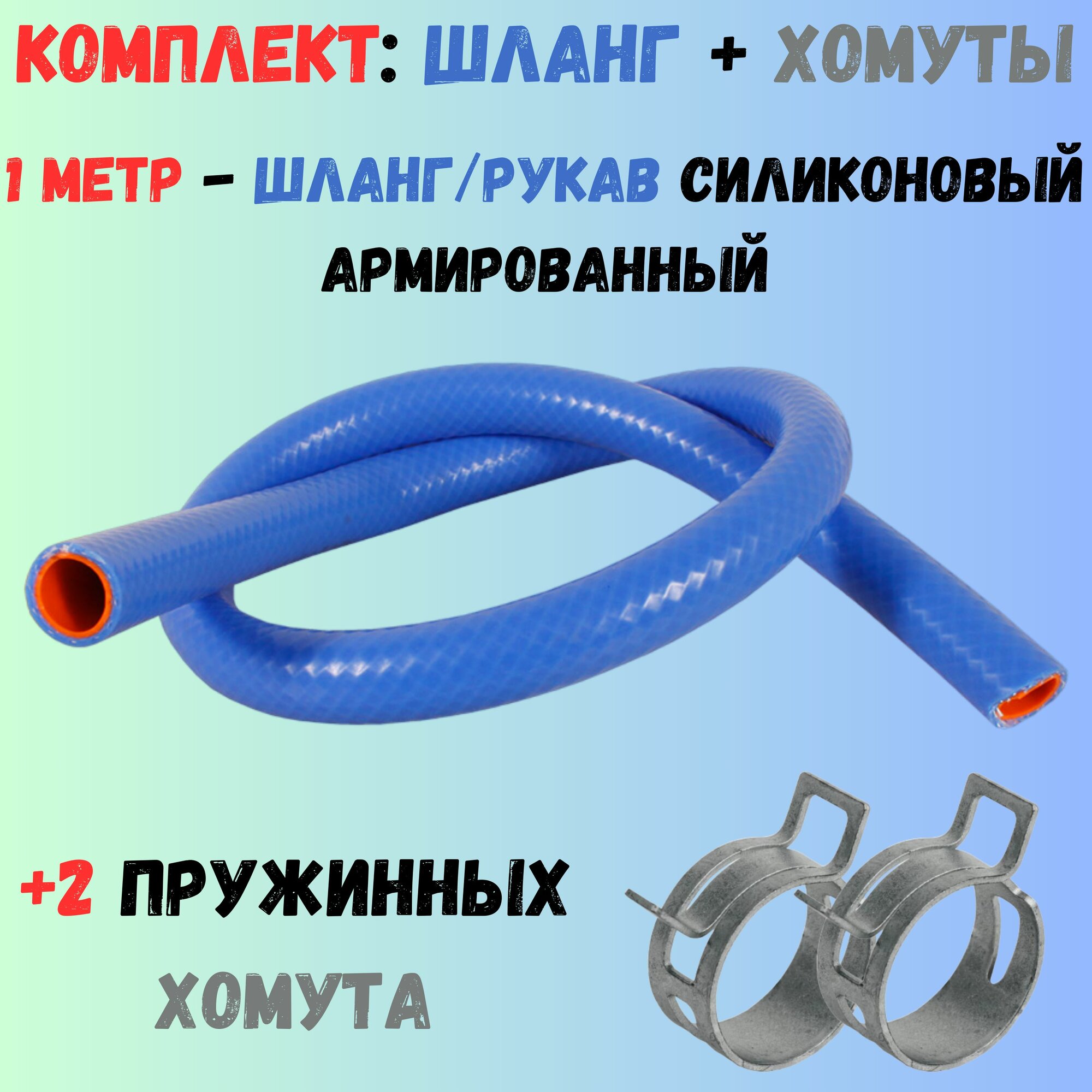 Купить Комплект: 1 метр силиконовый армированный шланг 12мм + 2 пружинных хомута (18мм)