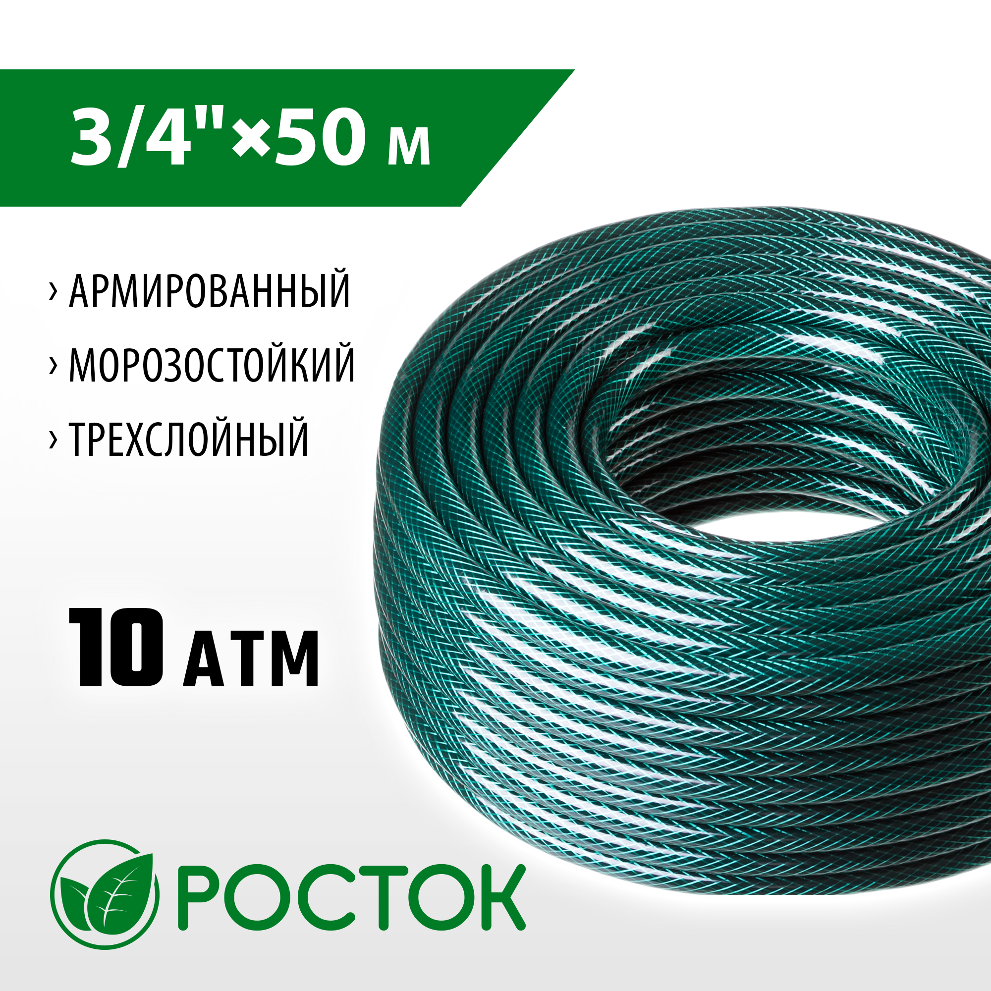 Росток Шланг росток классик поливочный, 10 атм., армированный, 3-х слойный, 3/4"x50м, ( 40308-3/4-50 )