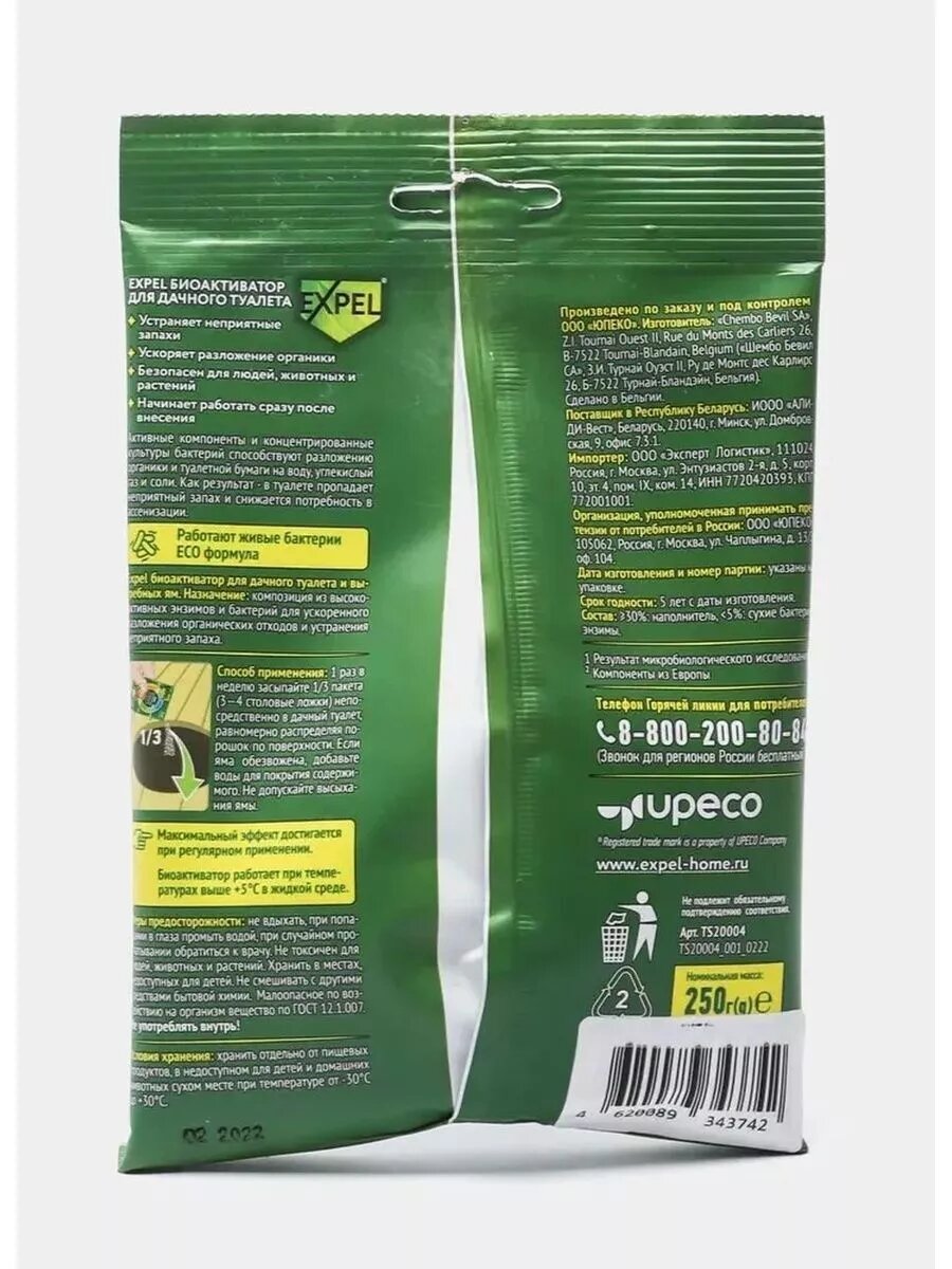 Биоактиватор для дачного туалета, септиков, выгребных ям 250гр Expel, биоактиватор для торфяных туалетов