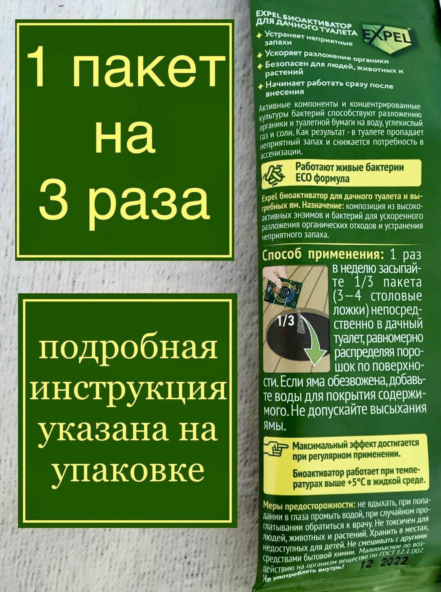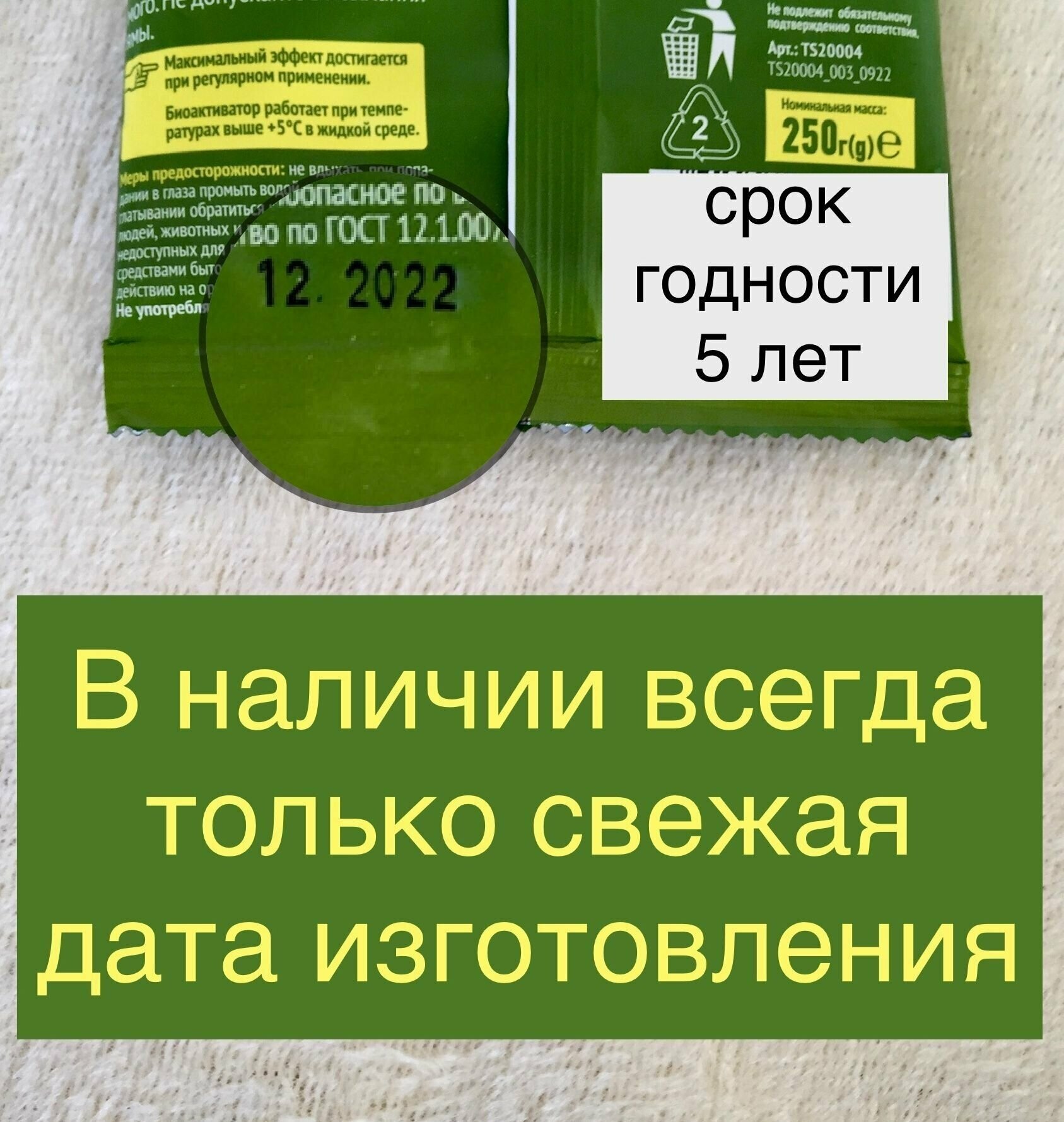 | Дополнительная информация | Важно заметить что препарат абсолютно безопасен для людей, животных, растений и окружающей среды; 4 пакетика это 3 месяца активной работы бактерий; |