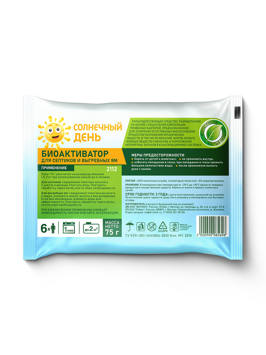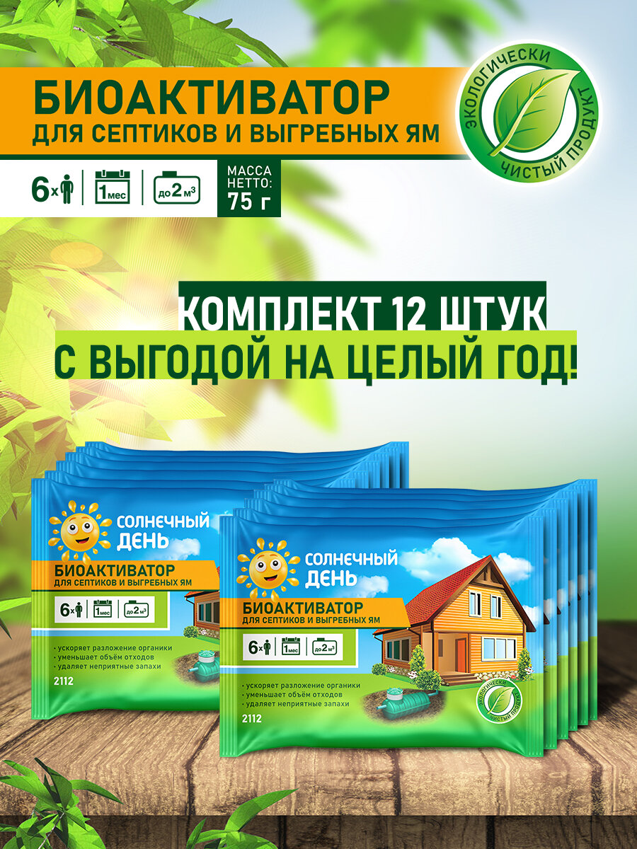 Солнечный День Бактерии для септика, выгребных ям и дачных туалетов 12шт по 75г интересное: