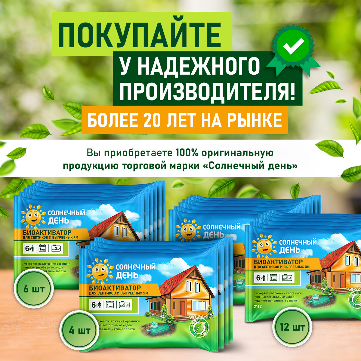 Ниже Вы можете прочитать отзывы на Солнечный День Бактерии для септика, выгребных ям и дачных туалетов 12шт по 75г, ознакомится с подробными характеристиками, посмотреть интересные обзоры и фотографии на Солнечный День Бактерии для септика, выгребных ям и дачных туалетов 12шт по 75г.