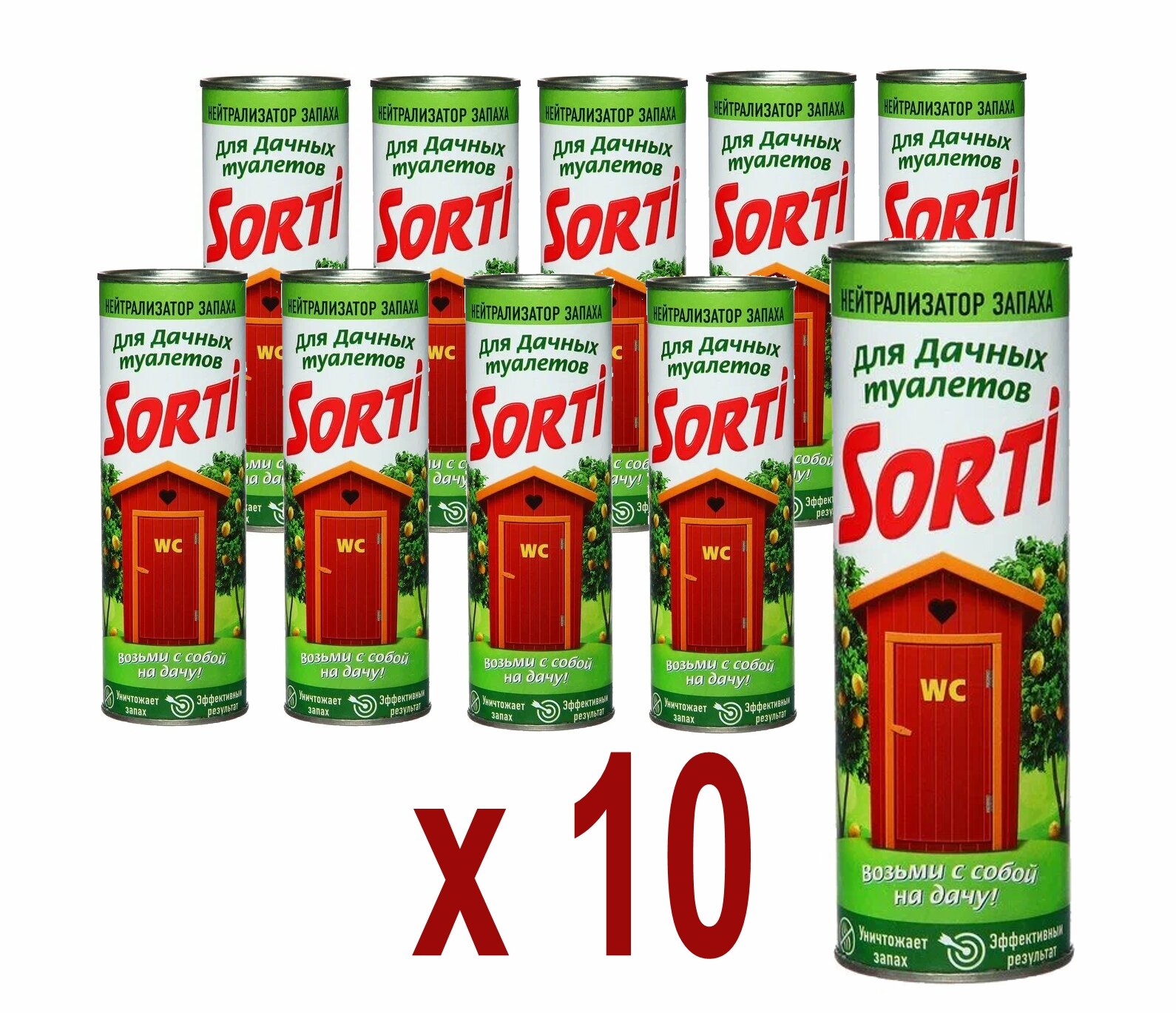 Купить Средство Sorti для дачного туалета / Дезодорирующее средство нейтрализатор запаха для уличного туалета, 10 банок по 500 гр