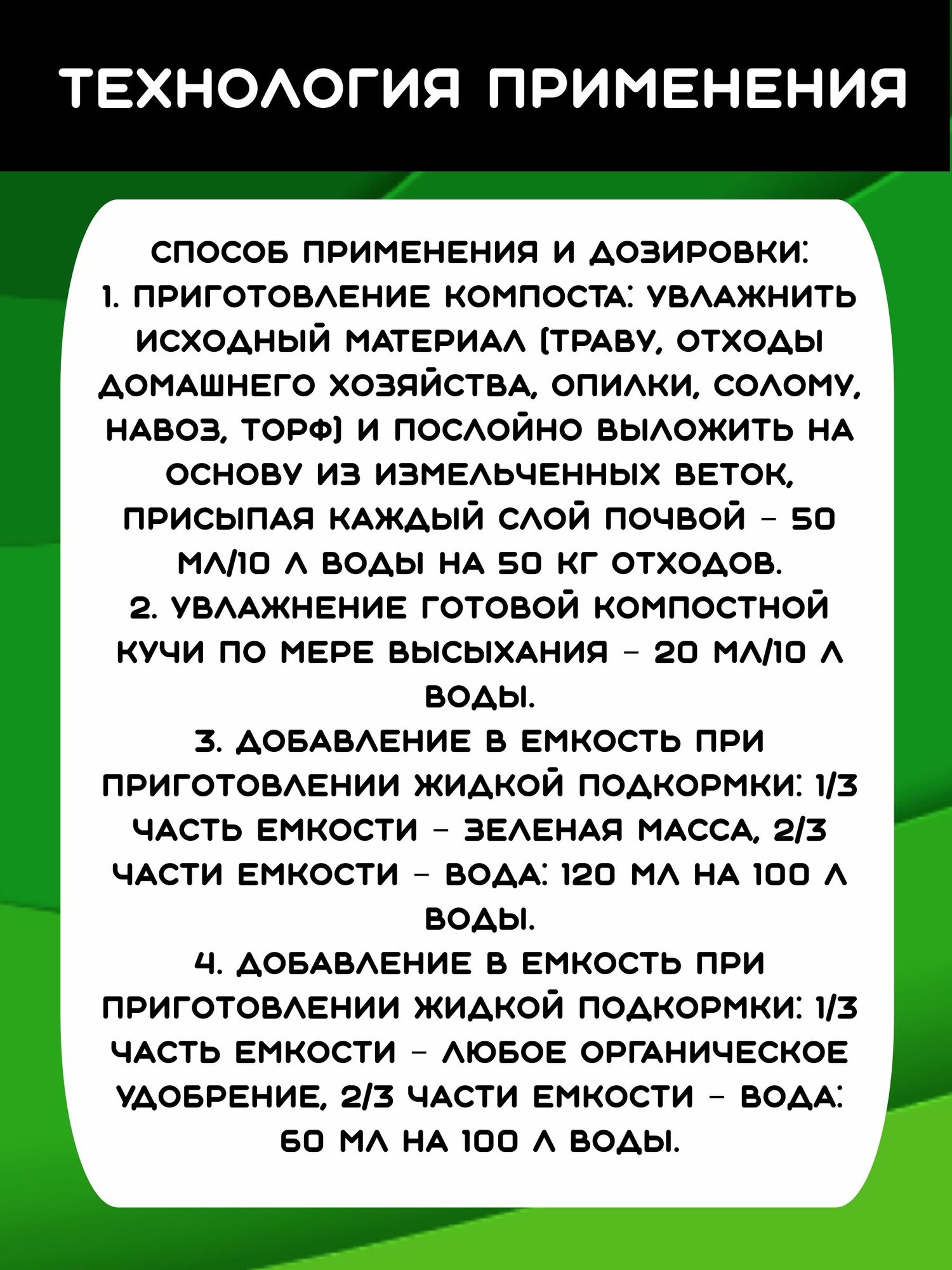 | Область применения | для компостирования |