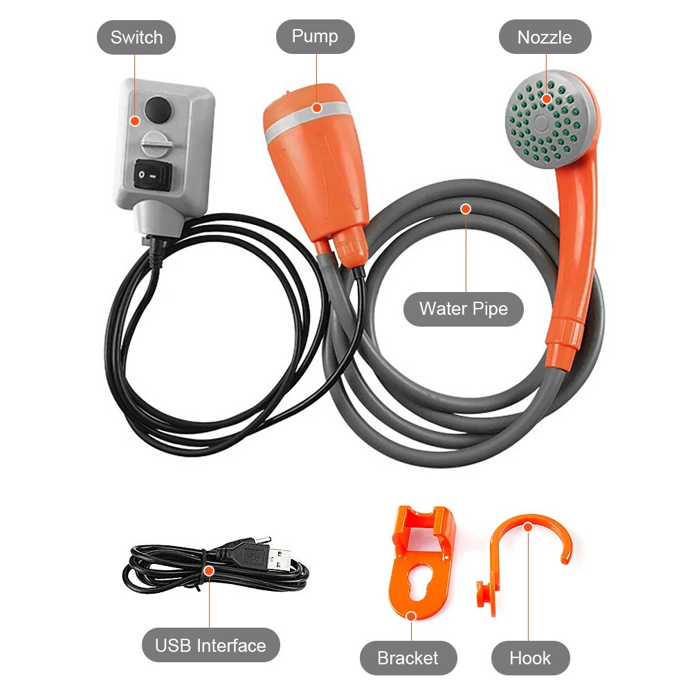 Портативный душ с насосом для дачи и туризма, аккумуляторный