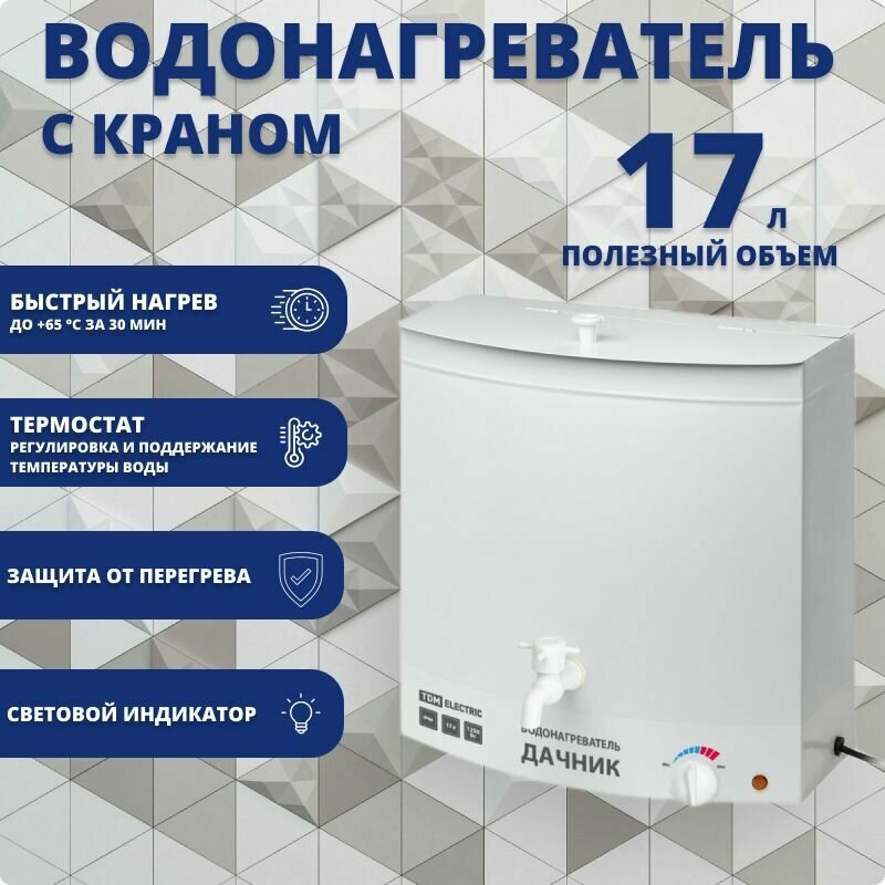 Водонагреватель "дачник" с краном 17 л 1250 Вт IP55 термостат, сталь, наливной умывальник дачный с подогревом, белый интересное: