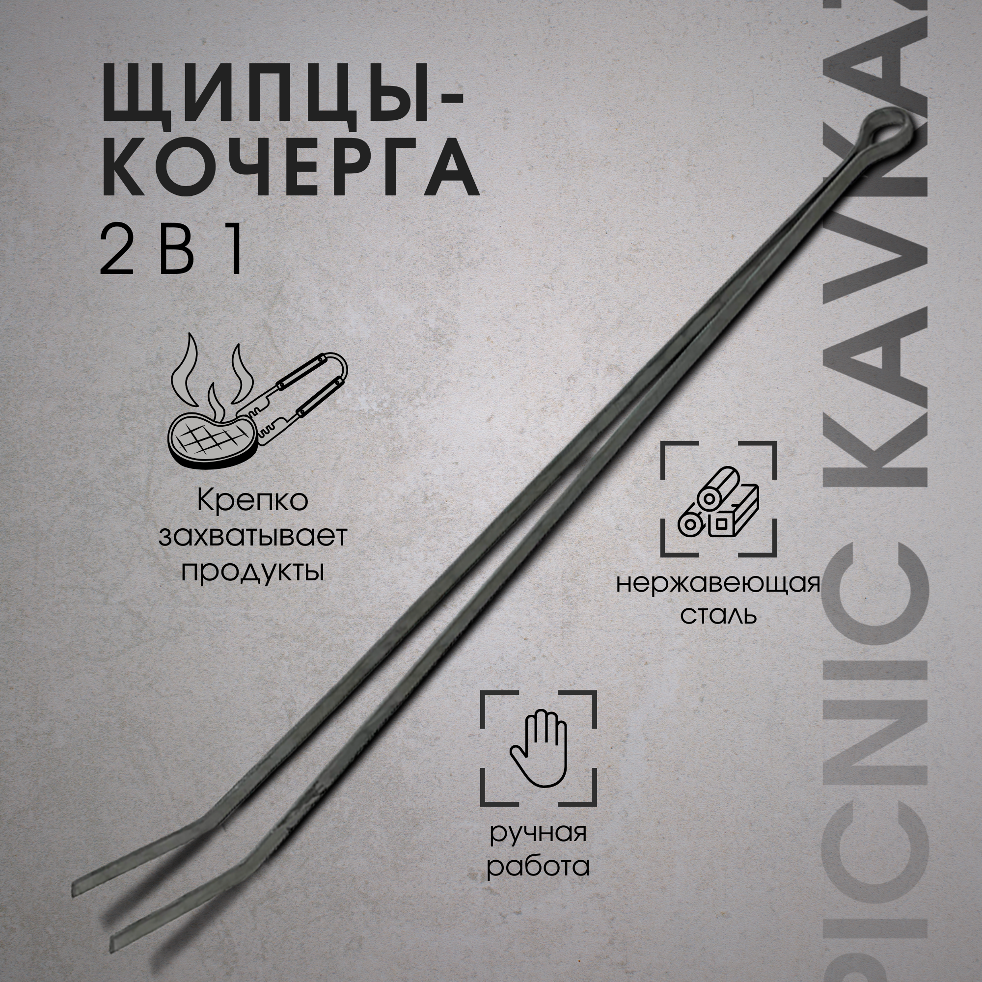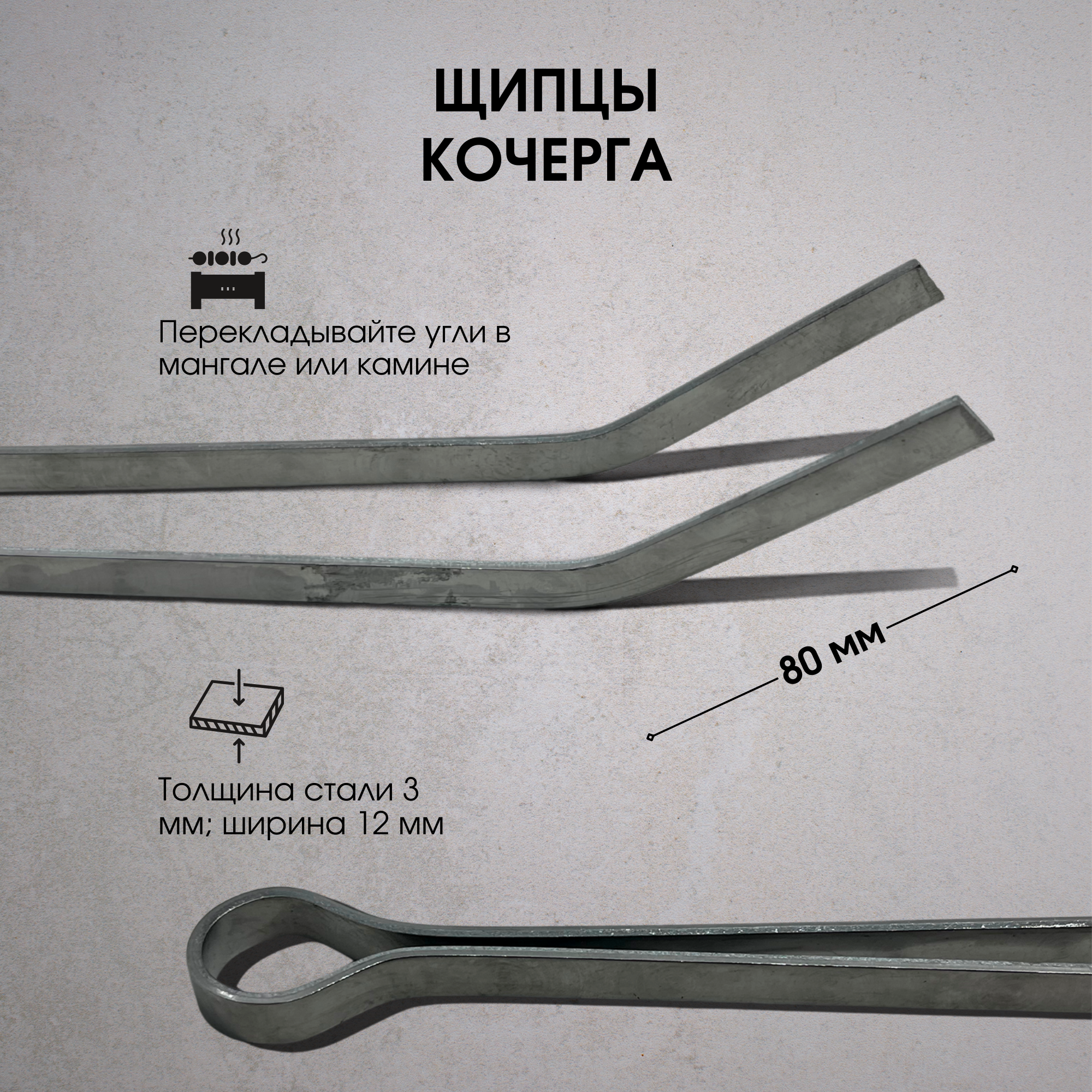 Кочерга для мангала и камина / Щипцы металлические 65 см. интересное: