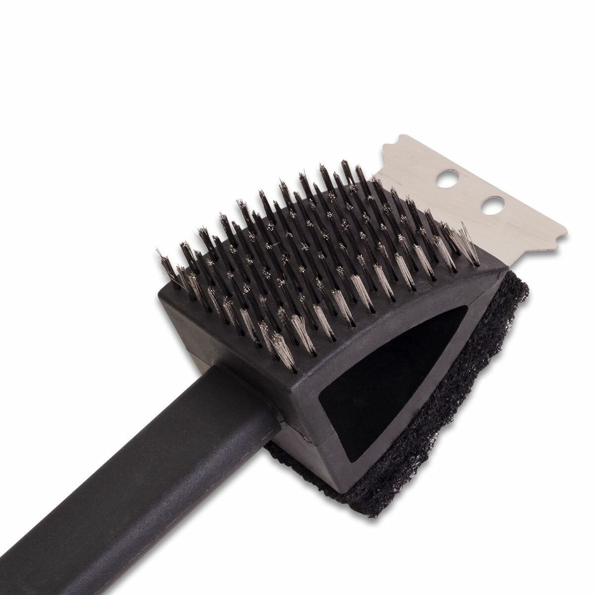 Купить Щетка для чистки гриля 3в1, цвет черный АМ-16 / Щетка-скребок для гриля, барбекю с длинной ручкой